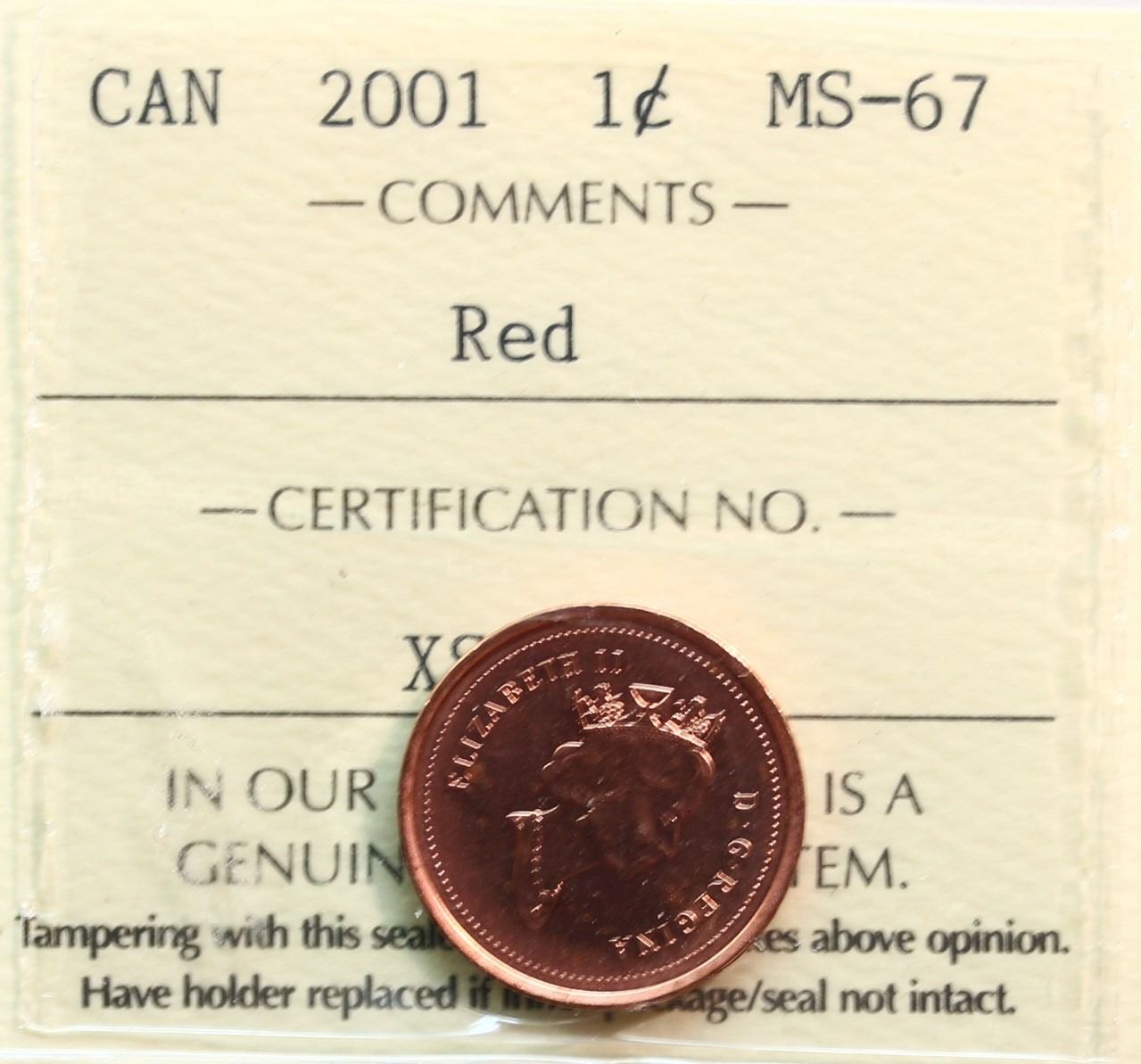 2001 1¢ ICCS Superb Gem Mint State-67 Red