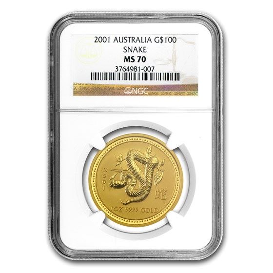 One piece 2001 1 oz Gold Lunar Year of the Snake MS-70 NGC (Series I)