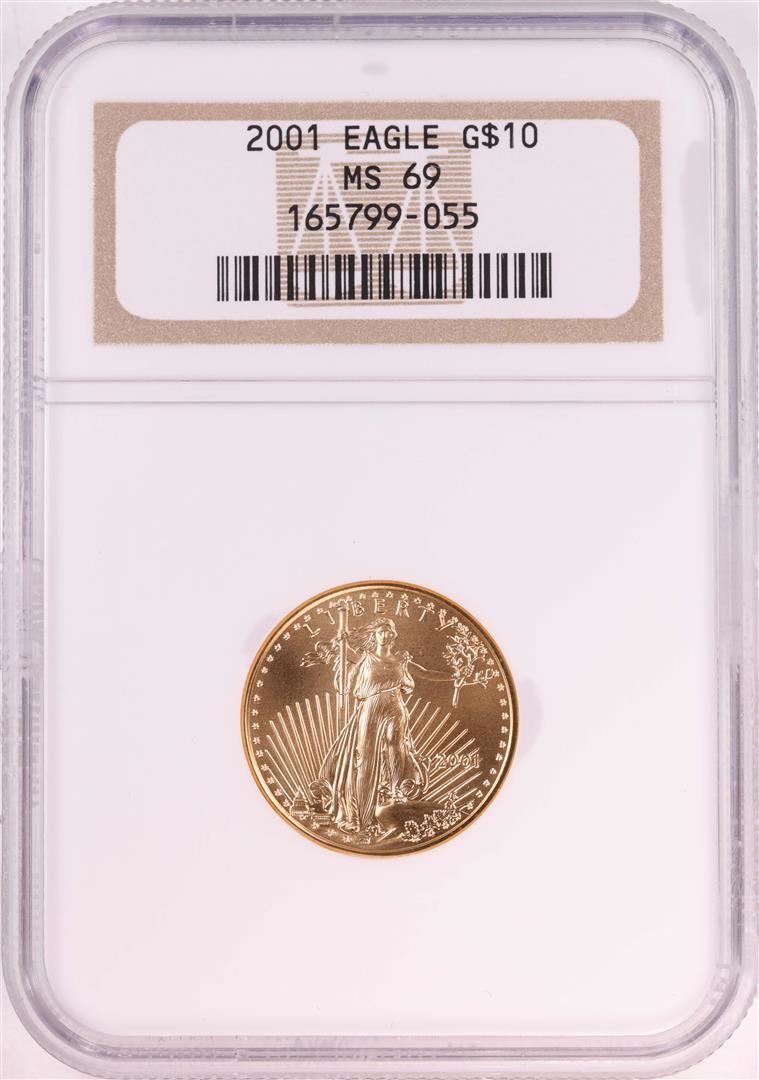One 2001 $10 American Gold Eagle Coin NGC MS69. NGC Certified.