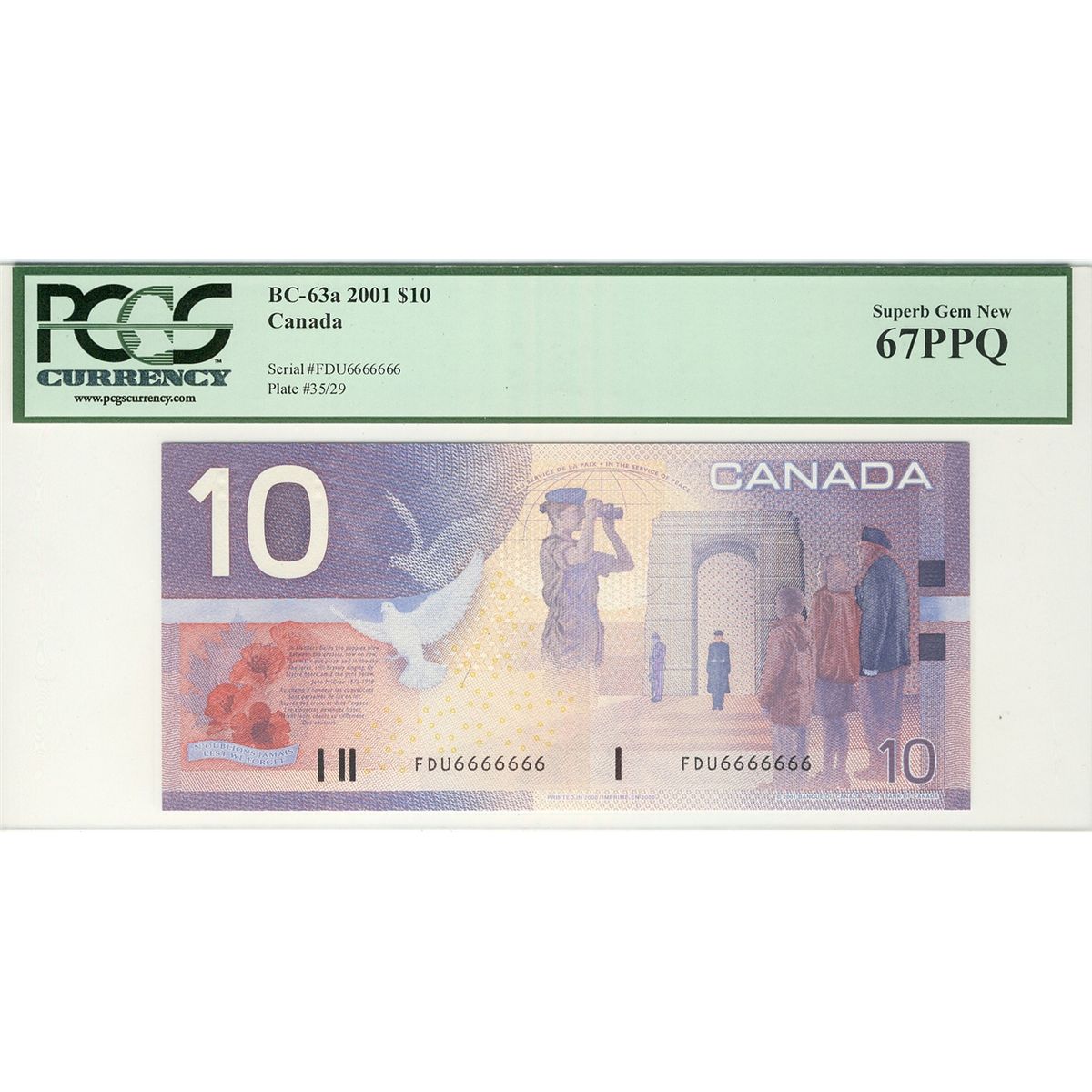 2001 $10 BC-63a SOLID #FDU6666666. PCGS Superb Gem UNC67PPQ.