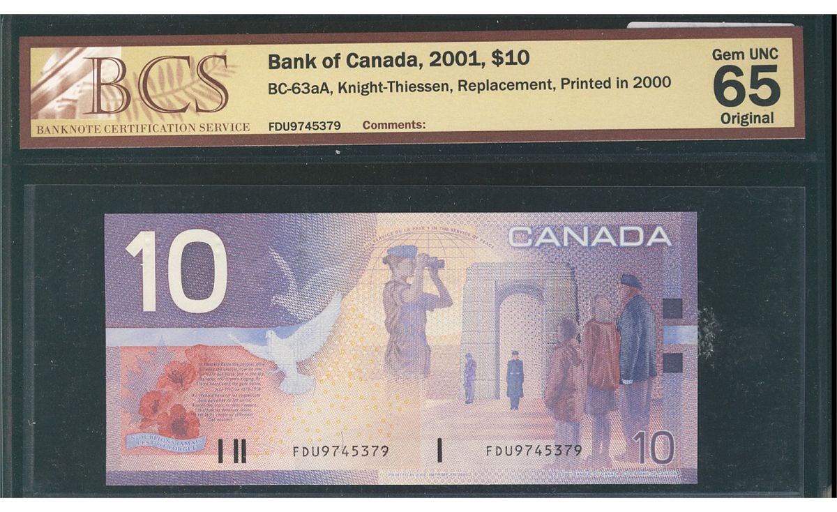 2001 $10 BC-63aA #FDU9745379 BCS Gem UNC65.