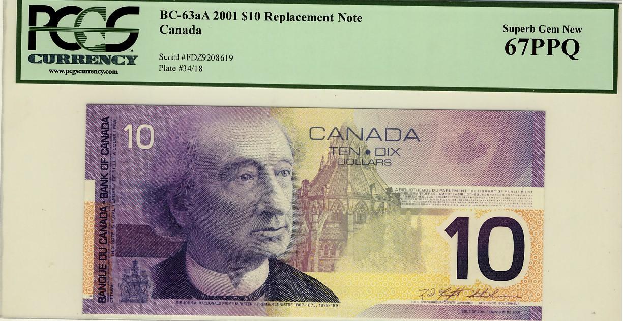 2001 $10 BC-63aA #FDZ9208619 PCGS UNC67PPQ