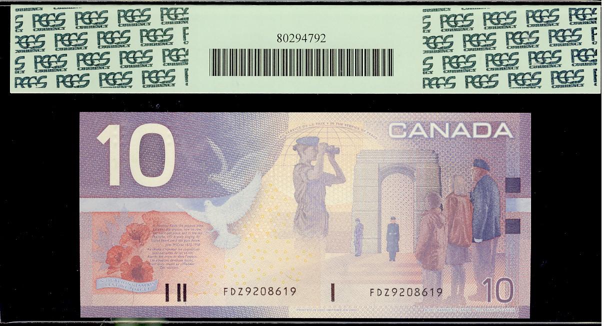 2001 $10 BC-63aA #FDZ9208619 PCGS UNC67PPQ