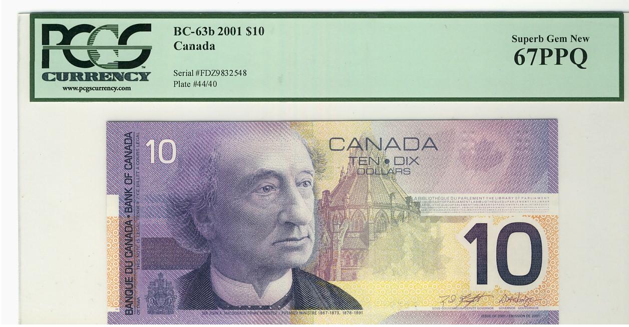 2001 $10 BC-63b #FDZ9832548, PCGS Superb Gem UNC67PPQ.