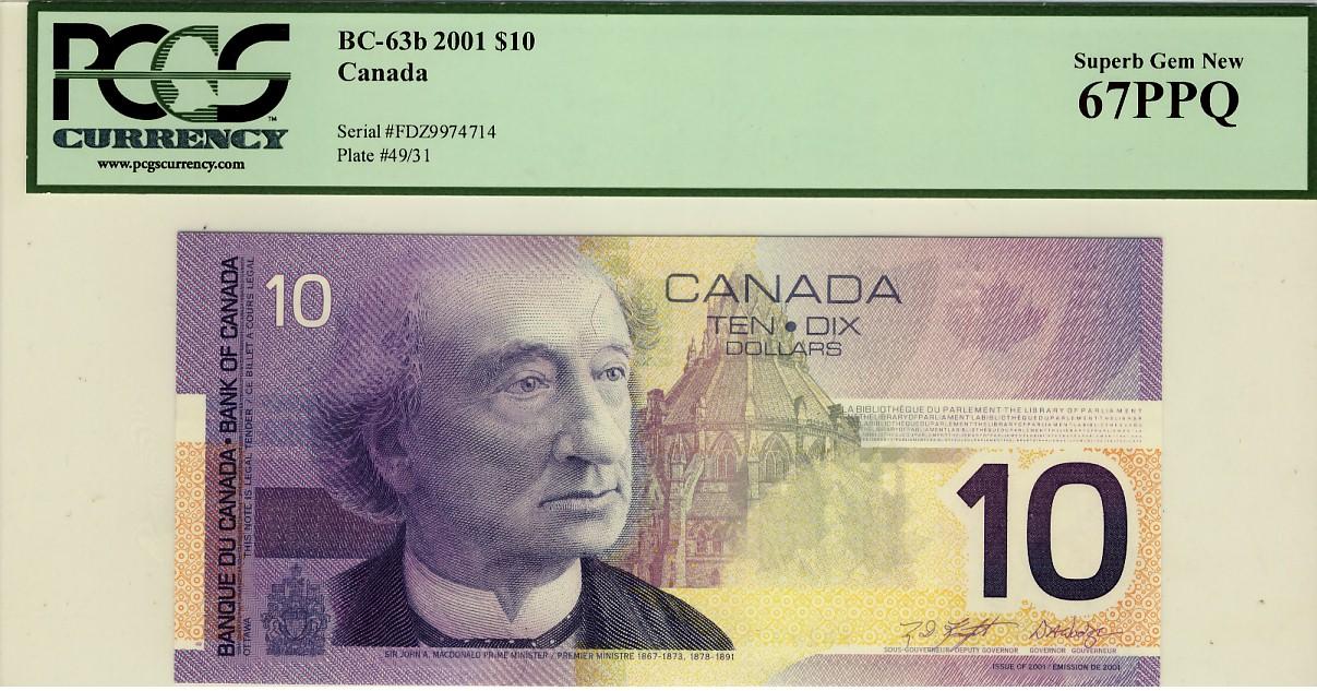 2001 $10 BC-63b FDZ9974714 PCGS UNC67