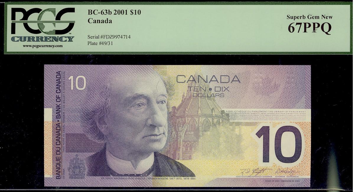 2001 $10 BC-63b FDZ9974714 PCGS UNC67