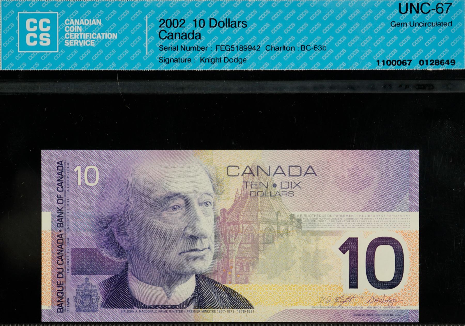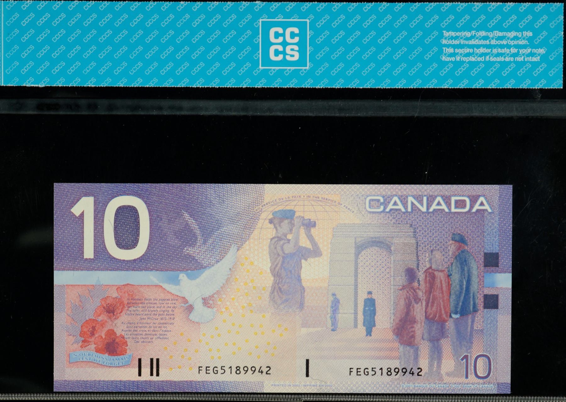 2001 $10 BC-63b #FEG5189942 CCCS Superb Gem Uncirculated-67