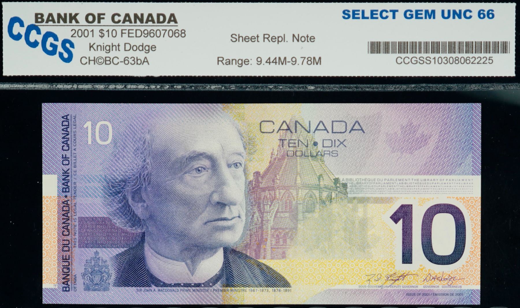 2001 $10 BC-63bA #FED9607068 "9.44M - 9.78M" CCGS Superb Gem Uncirculated-66