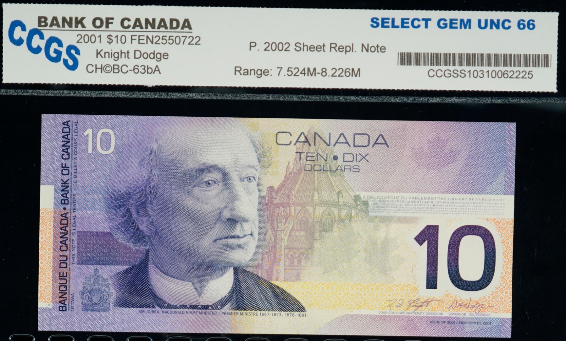 2001 $10 BC-63bA #FEN2550722 "7.524M - 8.226M" CCGS Superb Gem Uncirculated-66