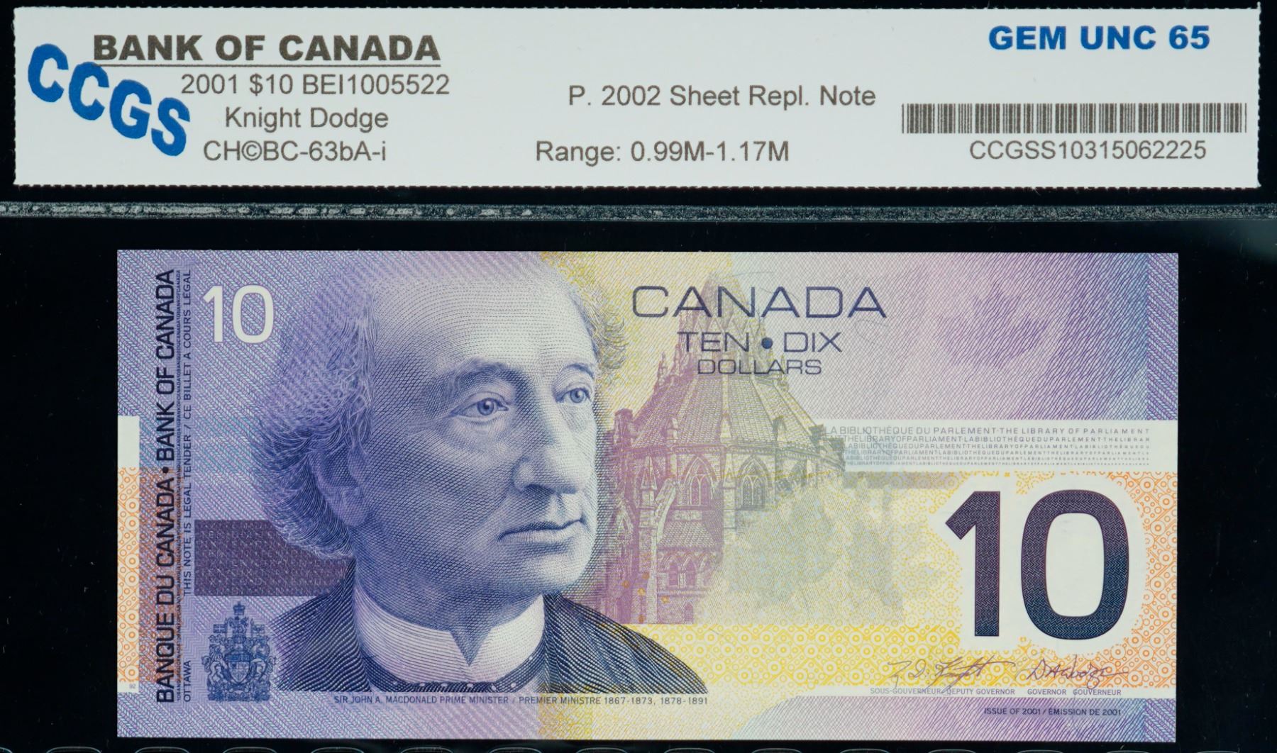 2001 $10 BC-63bA-i #BEI1005522 "0.99M - 1.17M" CCGS Gem Uncirculated-65