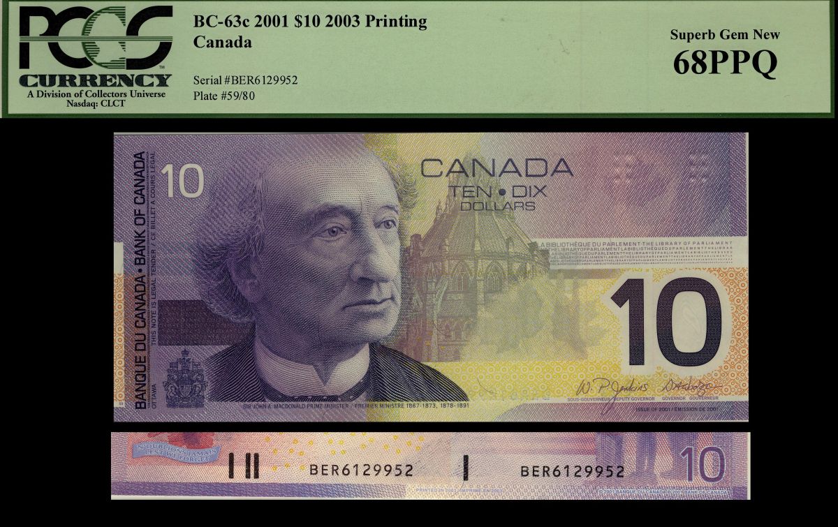 2001 $10 BC-63c 2003 Printing BER 6129952 PCGS UNC-68PPQ. A very RARE prefix note. Only a few examples are known.
