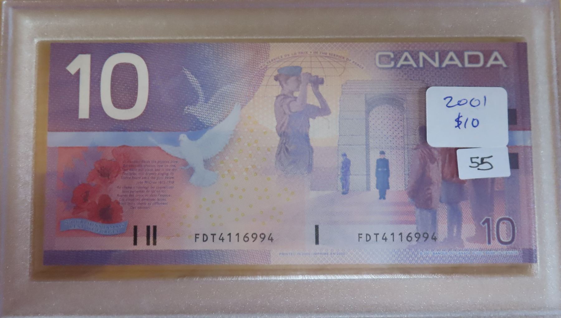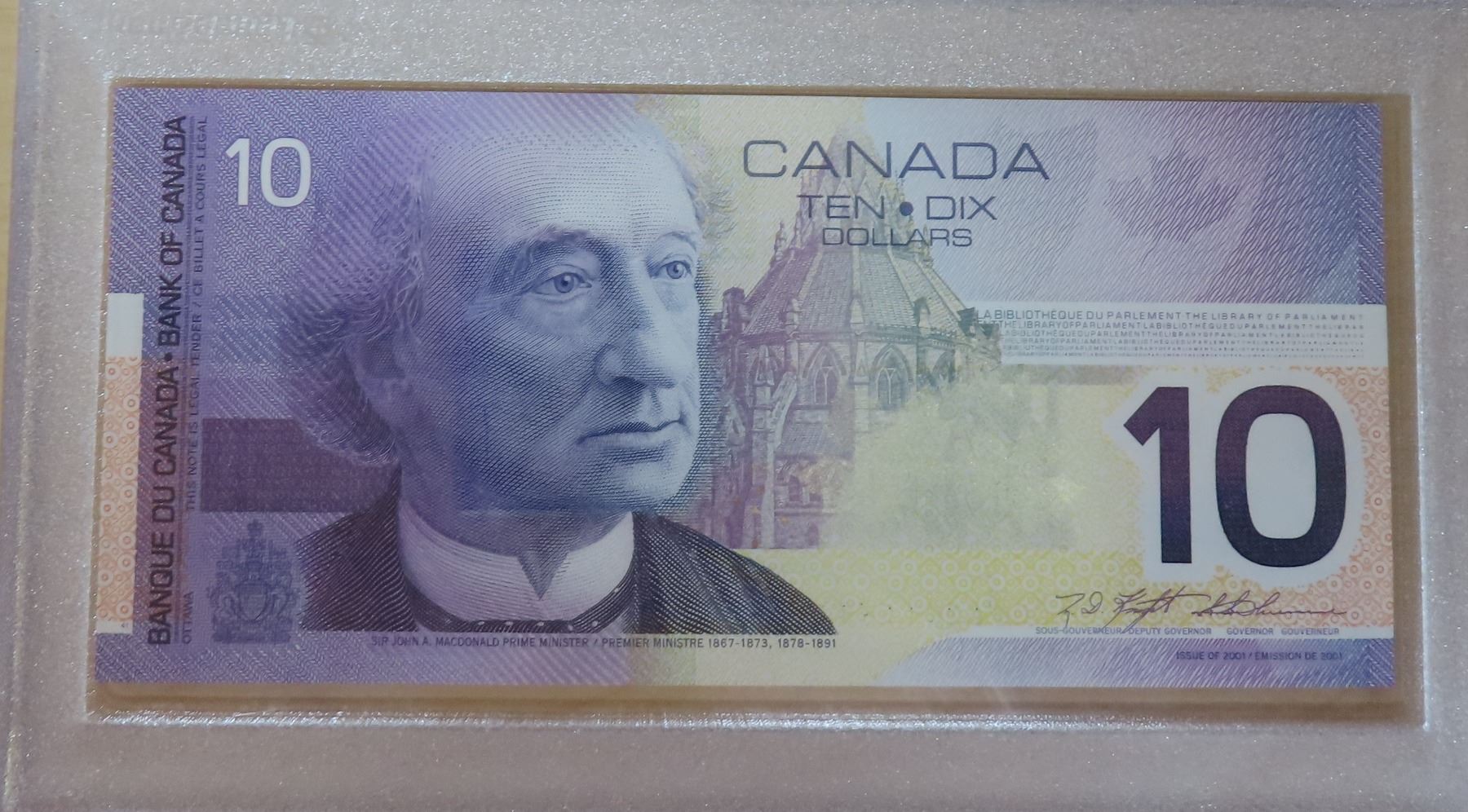 2001 $10. Knight-Thiessen signatures. FDT Prefix. BC-63a. Uncirculated. Housed in a hard plastic holder.