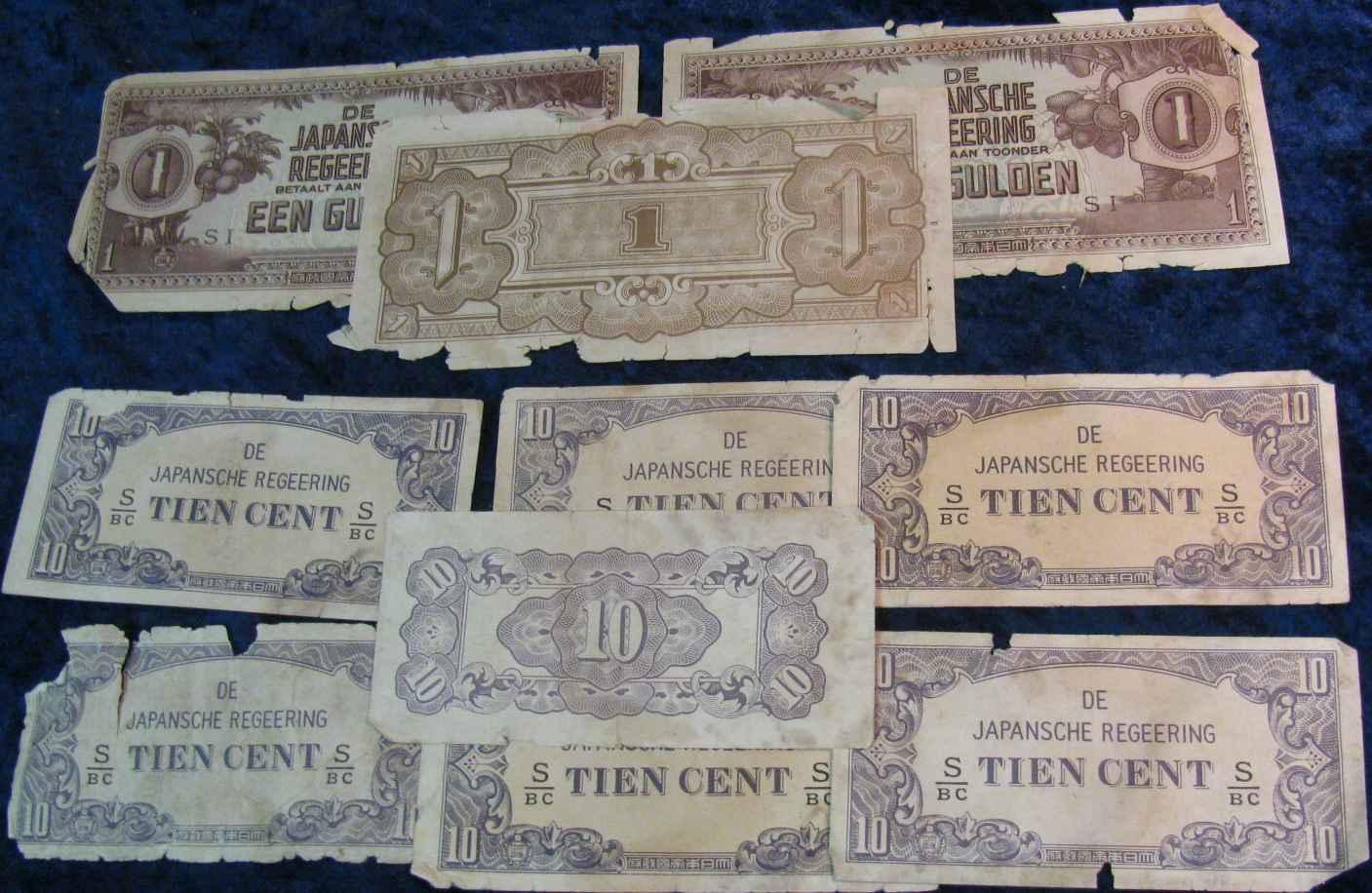 2001. (10) Old World War II Japanese Bank Notes.