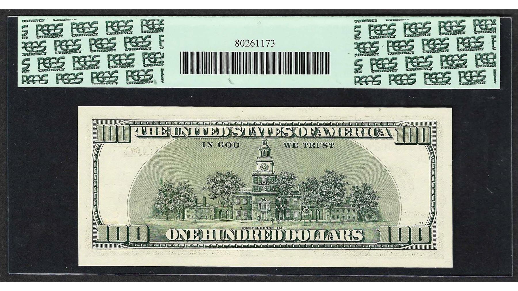 One 2001 $100 Federal Reserve STAR Note PCGS Superb Gem New 67PPQ. PCGS Graded.
