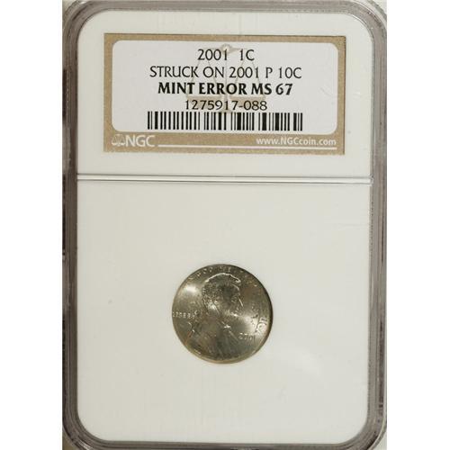 2001 1C Lincoln Cent--Struck on a 2001-P Dime--MS67 NG