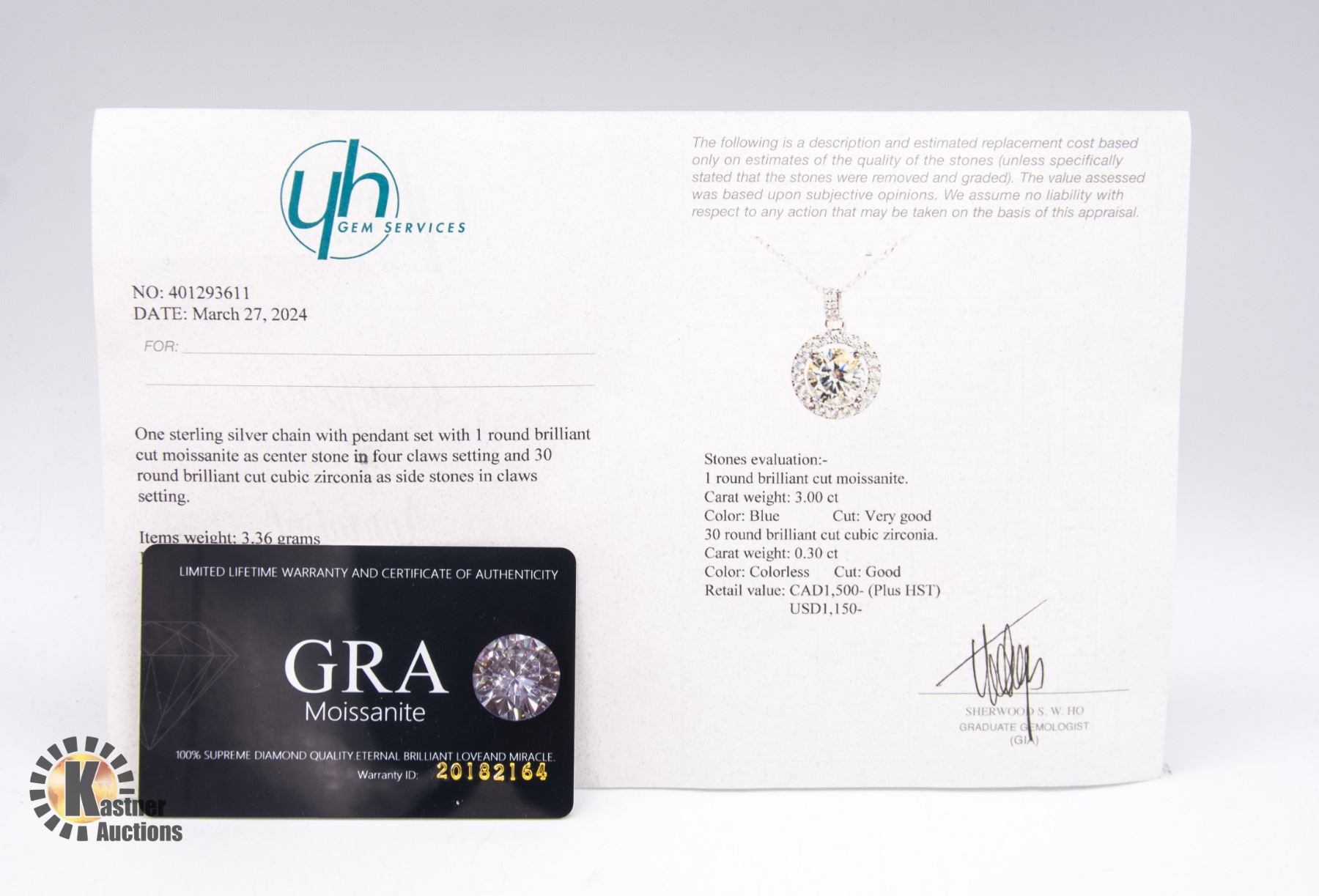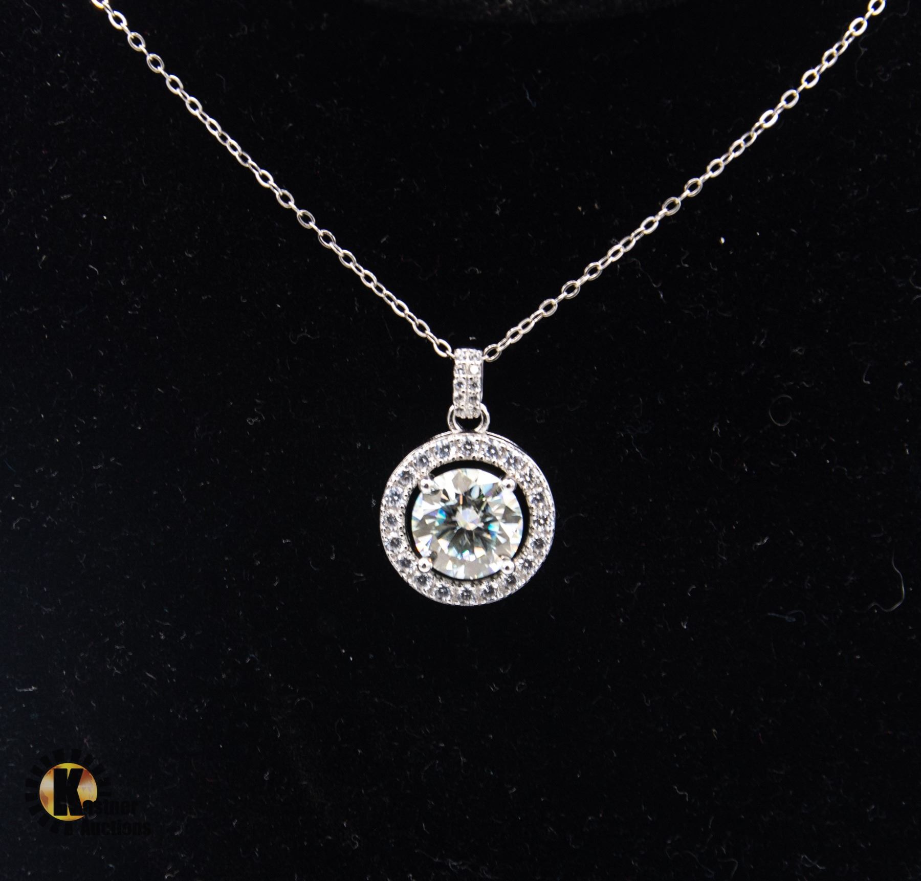 CUT MOISSANITE STONE VVS D COLOR SURROUNDED BY ROUND HALO SET IN 925 SILVER PENDANT RETAIL VALUE $1,500.00 COMES WITH GIFT BOX