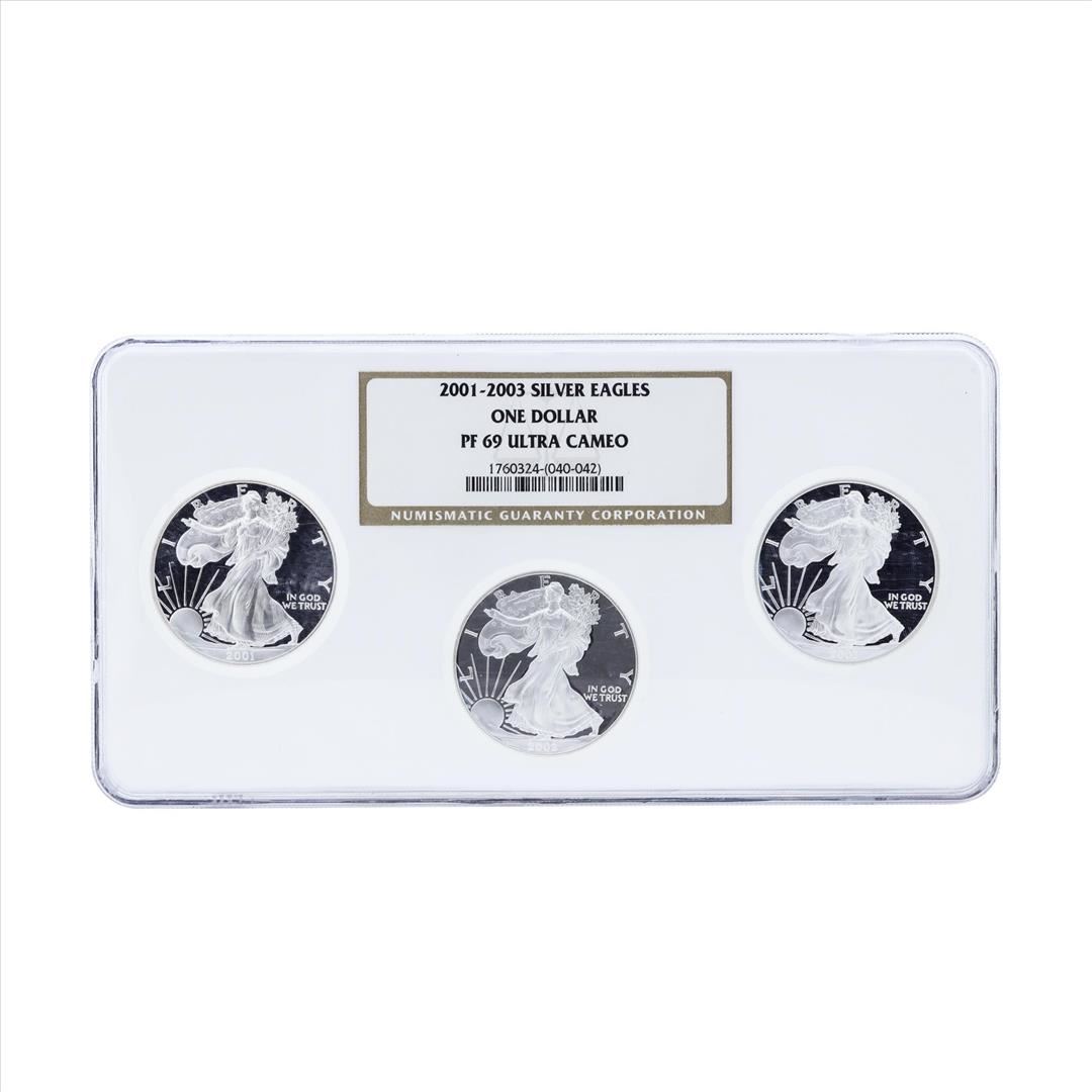 One 2001-2003 $1 American Silver Eagle Coin Set NGC PF69 Ultra Cameo. NGC Certified.