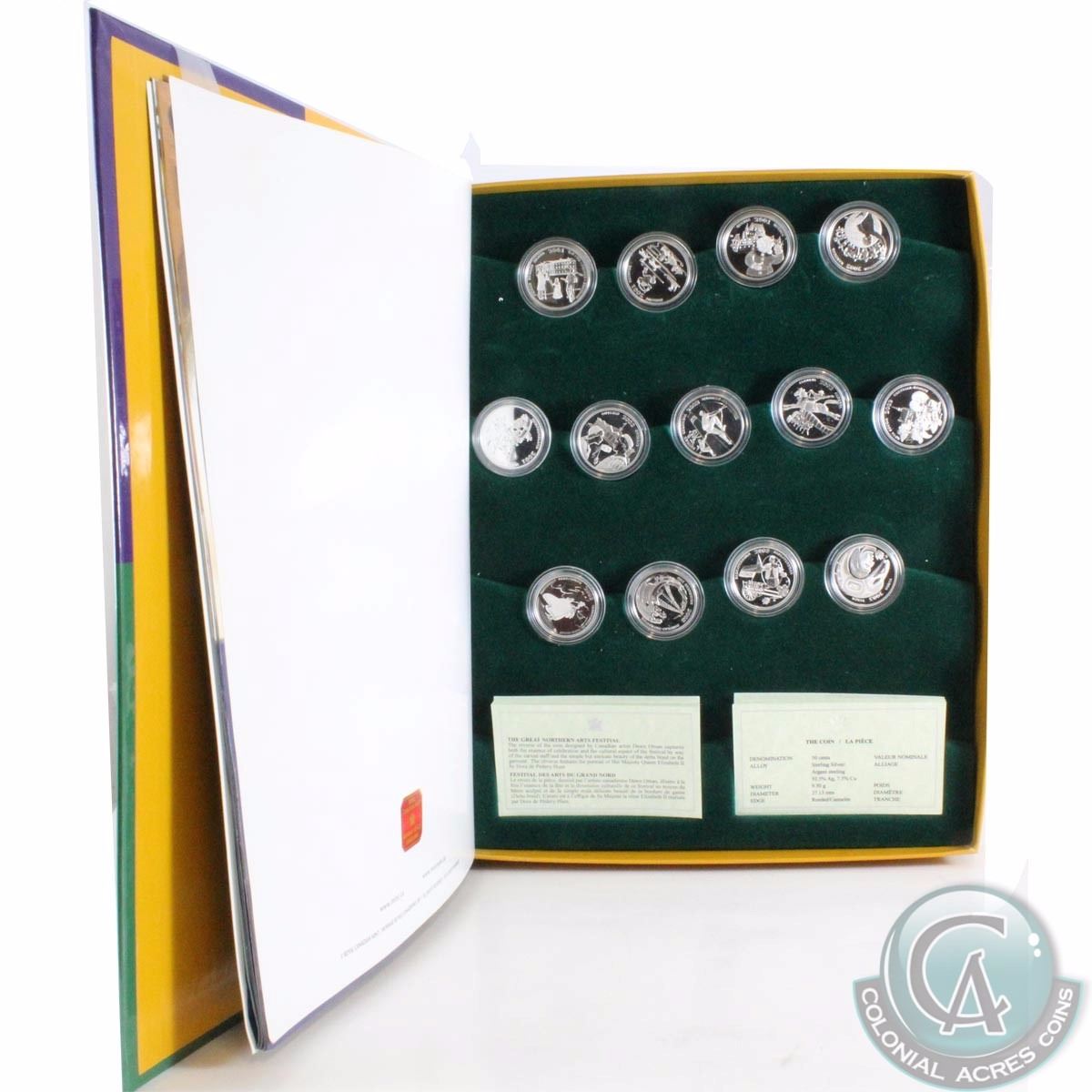 2001-2003 Festivals of Canada sterling silver 50ct Set issued by the Mint. The set includes All 13 coins issued from 2001-2003 in the original cardboard holder with the matching certificate and informational booklet. (booklet has come unhooked in one corner).