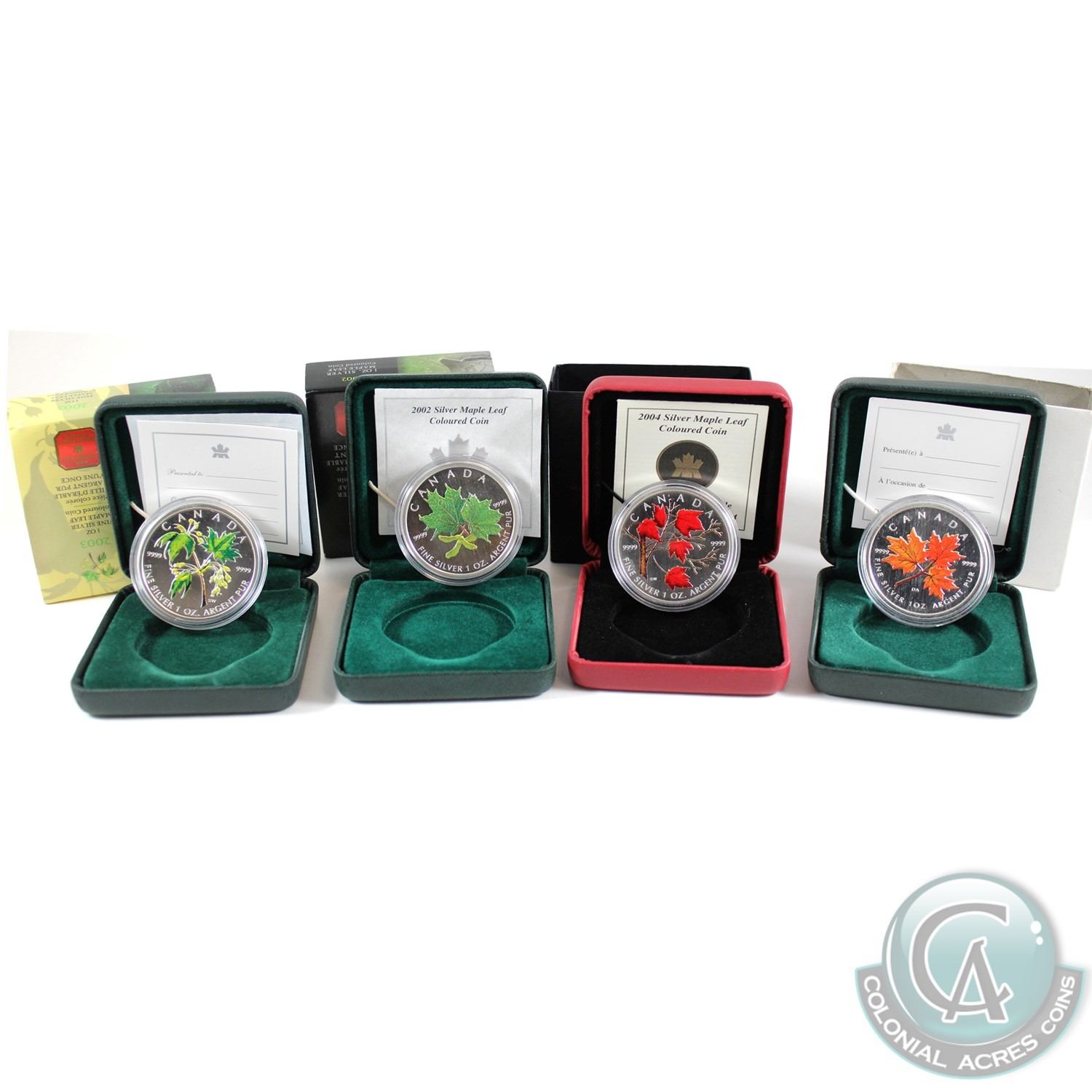2001-2004 Canada $5 1oz Coloured Fine Silver Maple Leafs (coins are lightly toned). 4pcs (TAX Exempt)