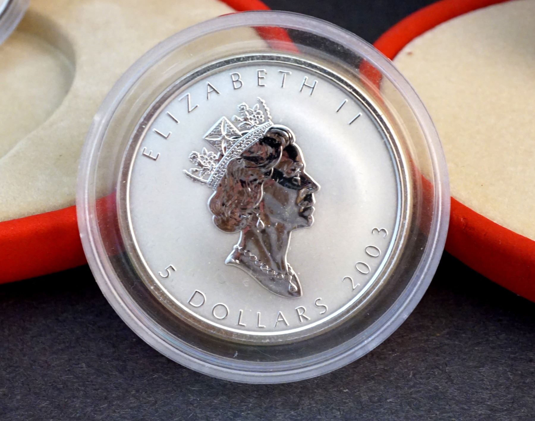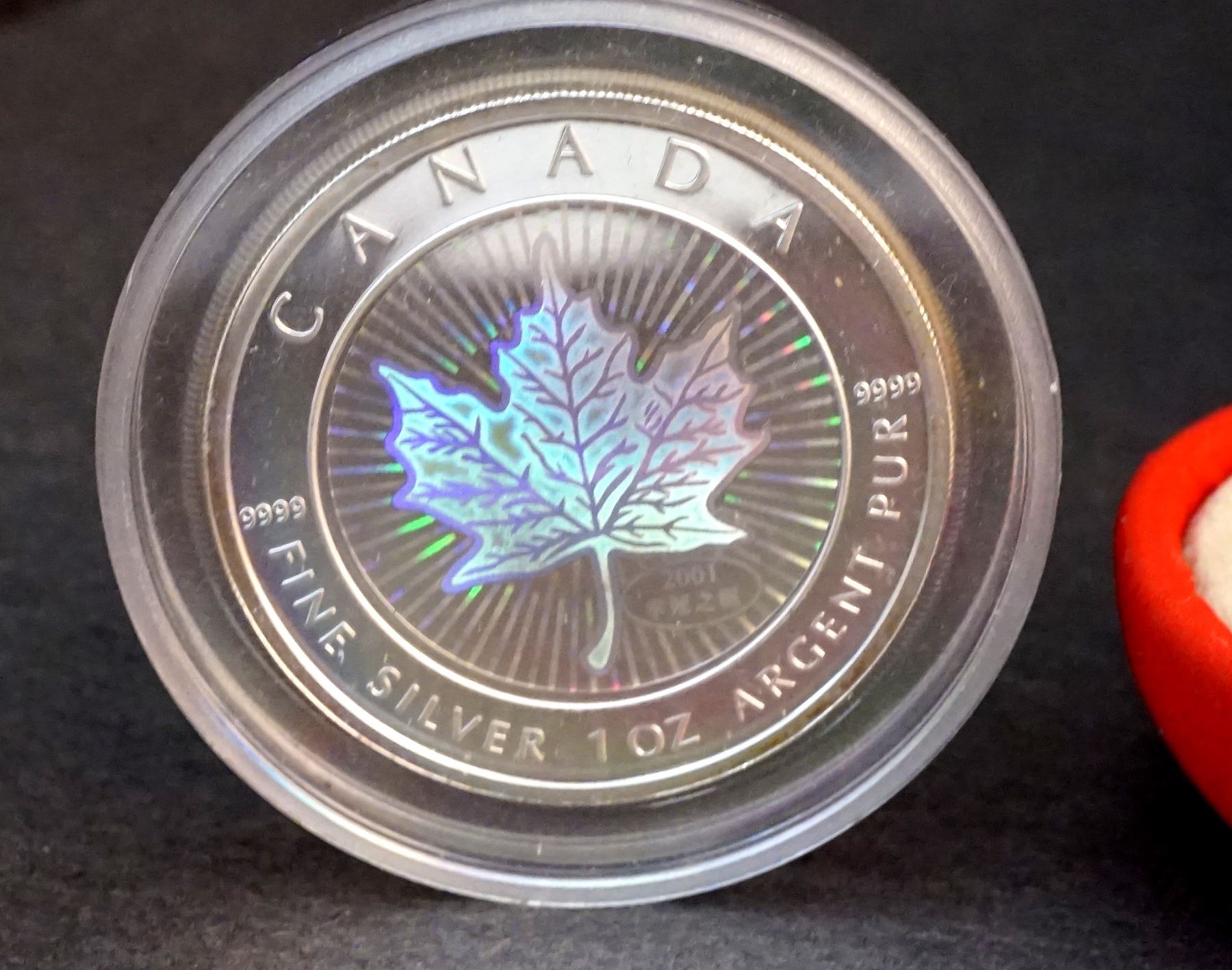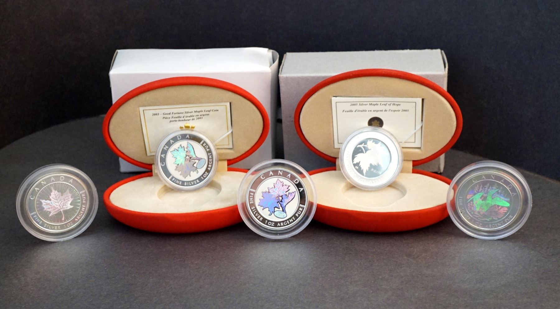 2001-2005 A Lot of 5 x $5.00 Hologram maple Leaf .9999 5.0 oz.Encapsulated