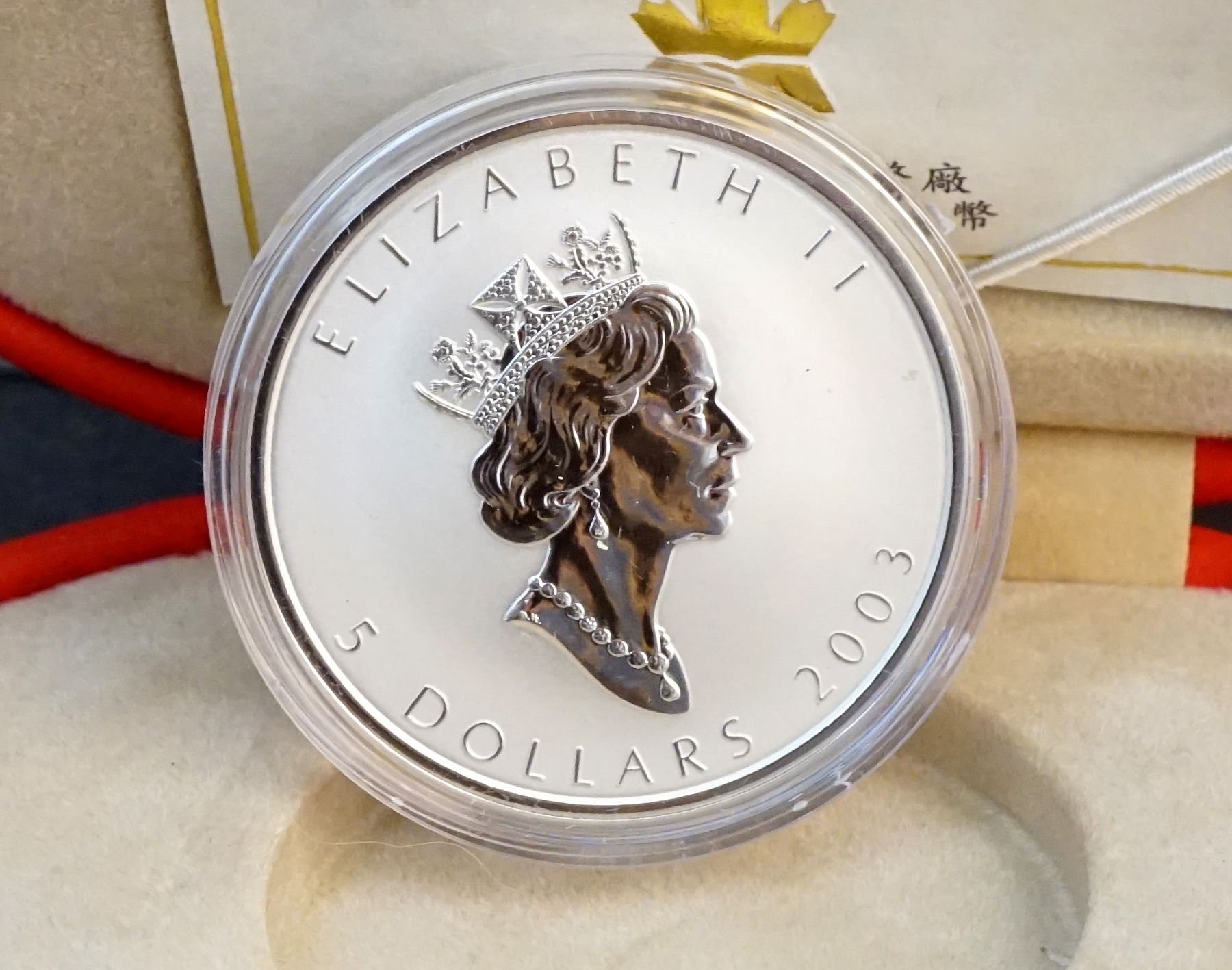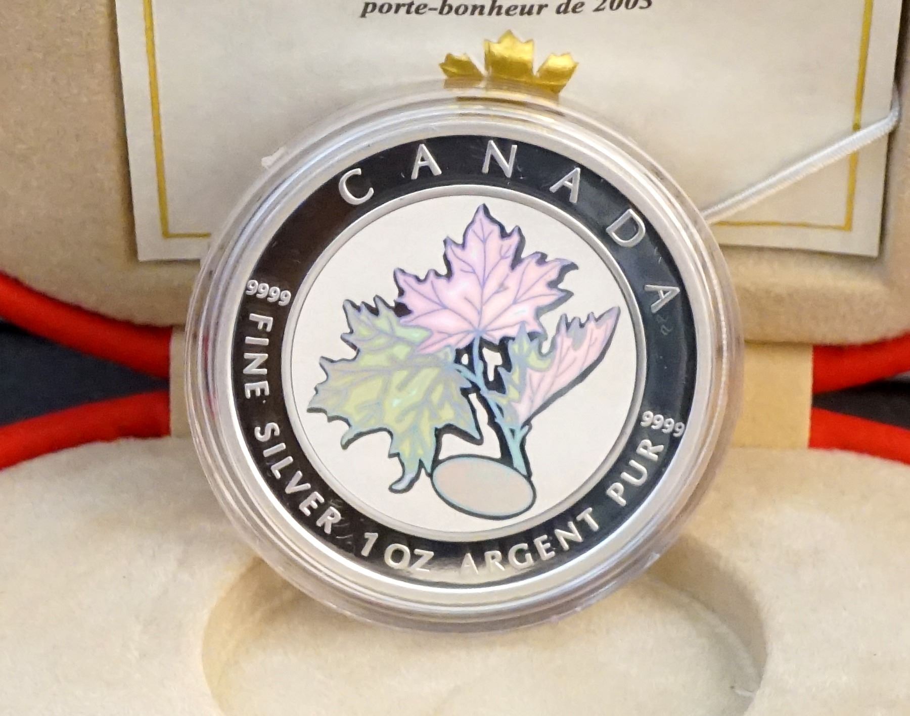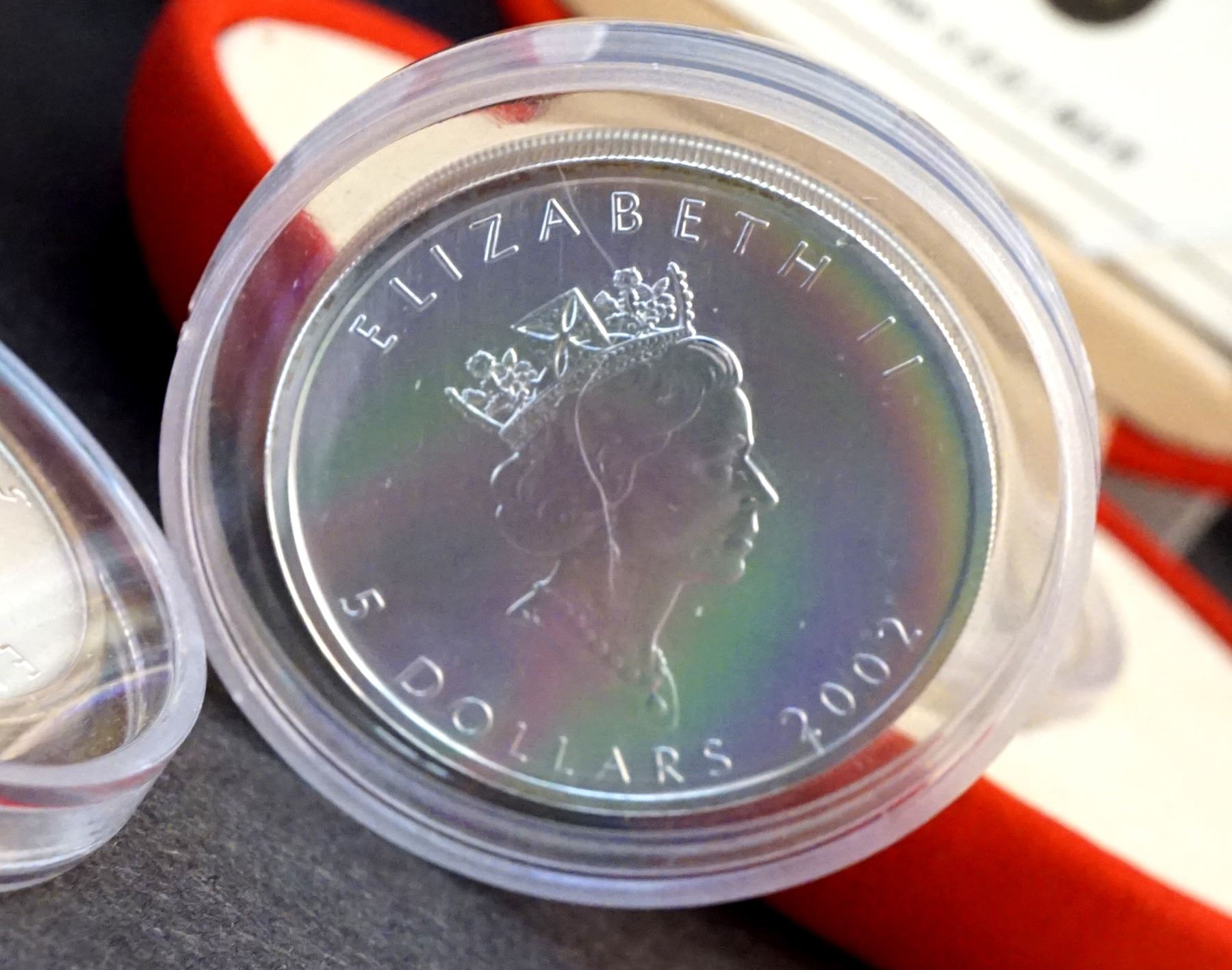 2001-2005 A Lot of 5 x $5.00 Hologram maple Leaf .9999 5.0 oz.Encapsulated