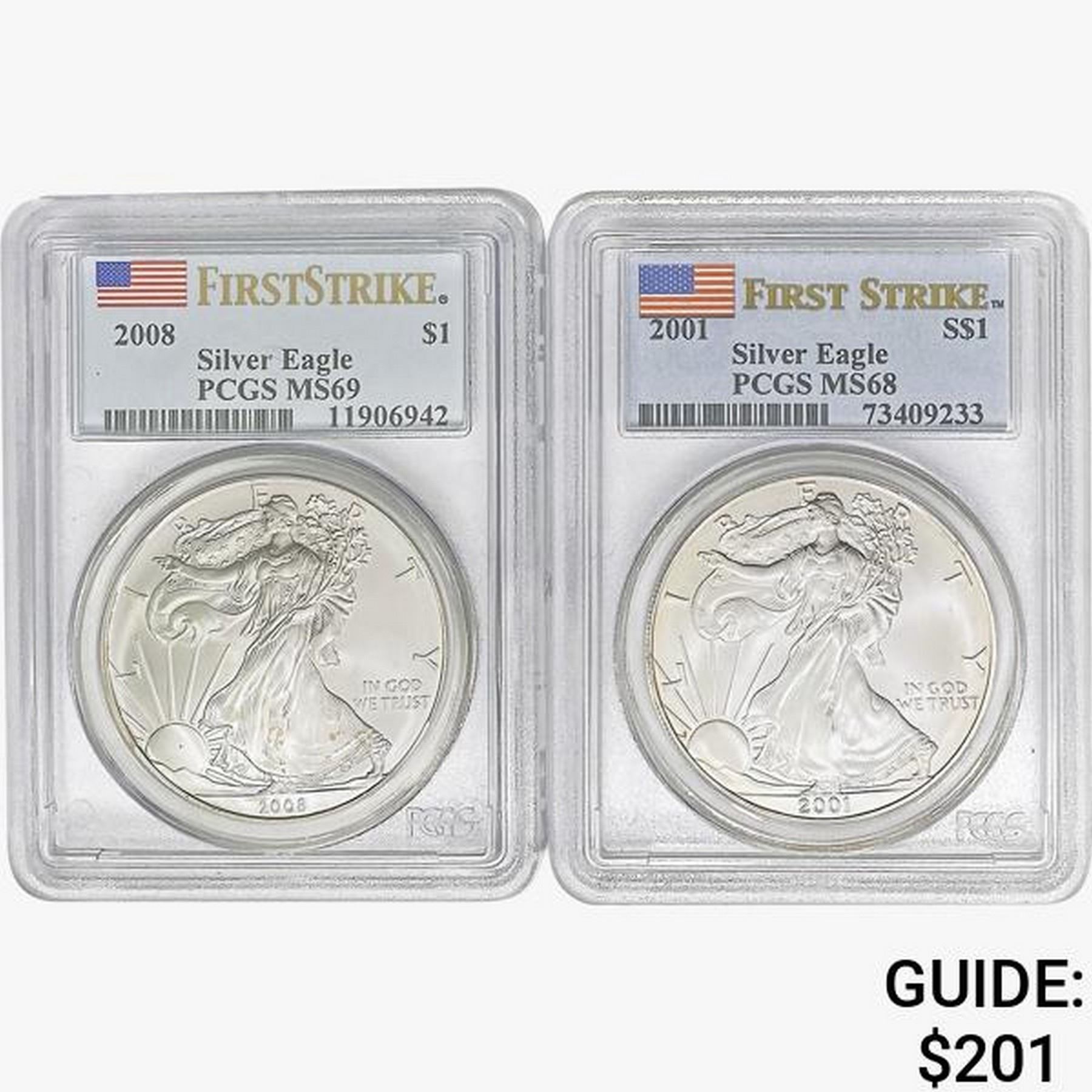 2001-2008 [2] Silver Eagle PCGS MS68-69