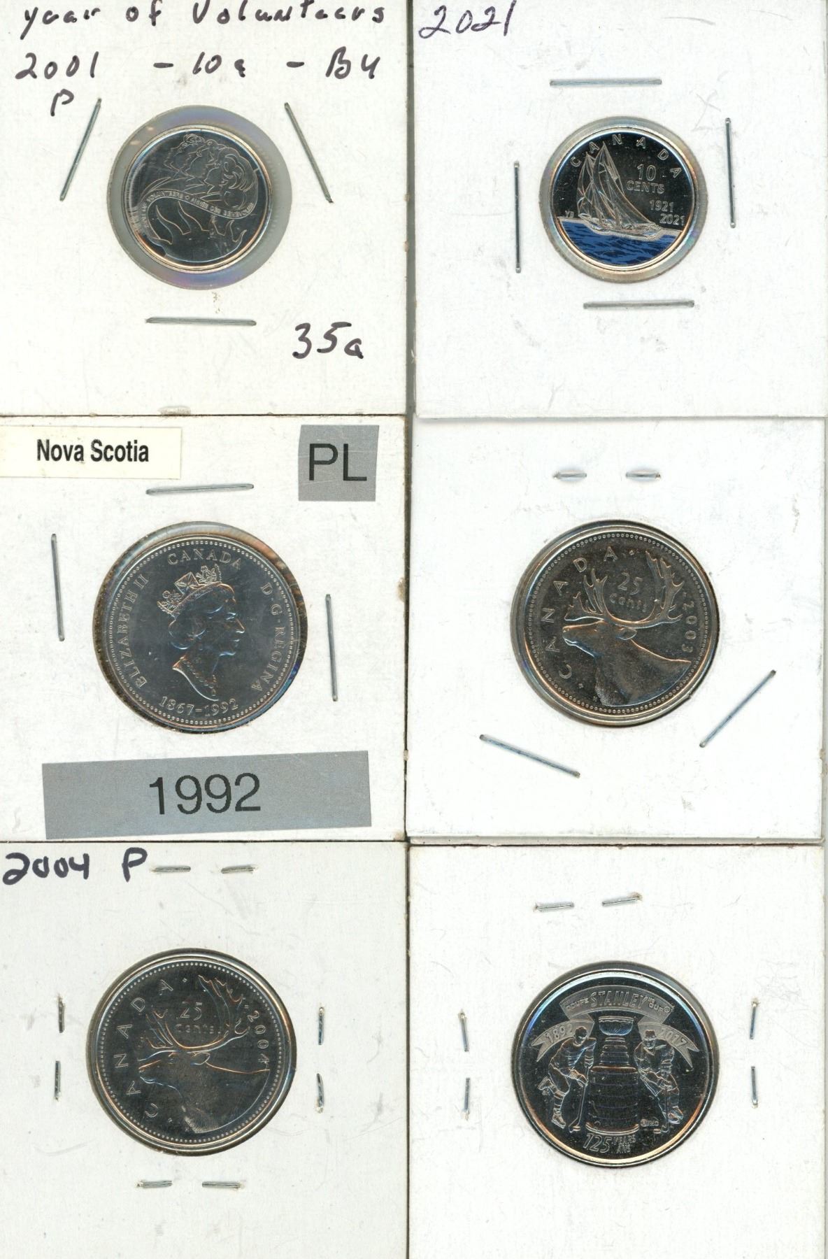 2001, 2021 Canadian Proof Like 10 Cents - 1992, 2003, 2004, 2017 Canadian Proof Like 25 Cents Coin.