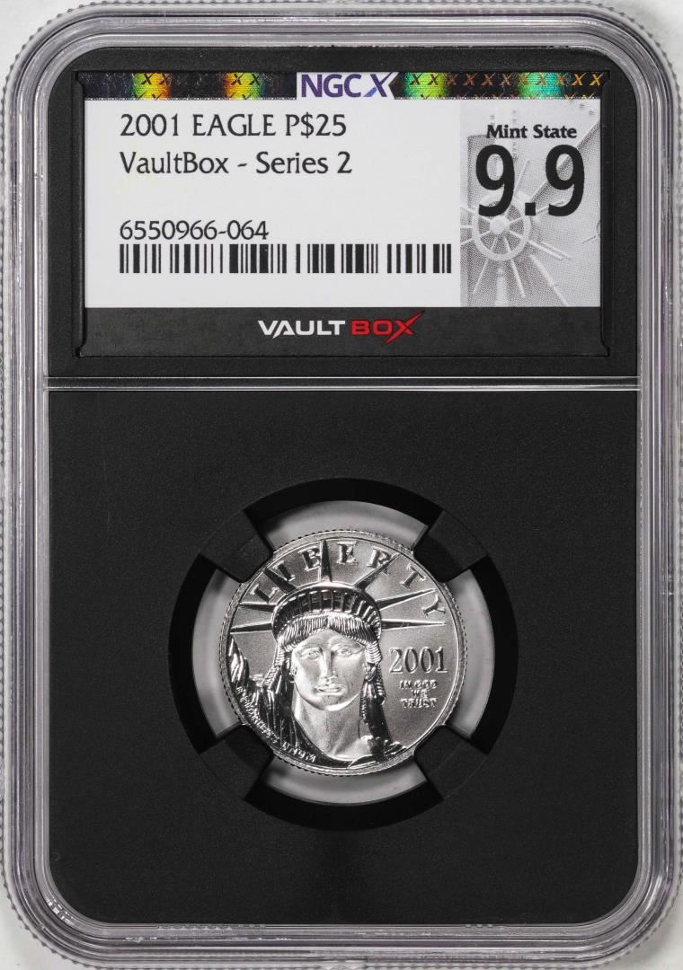 One 2001 $25 American Platinum Eagle Coin NGCX Mint State 9.9 VaultBox Series 2. NGC Certified.