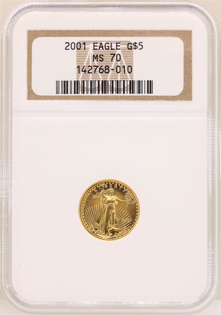 One 2001 $5 American Gold Eagle Coin NGC MS70. NGC Certified.