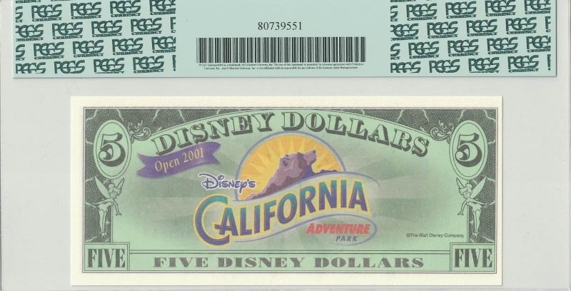 One 2001 $5 Disney Dollar PCGS 64PPQ.