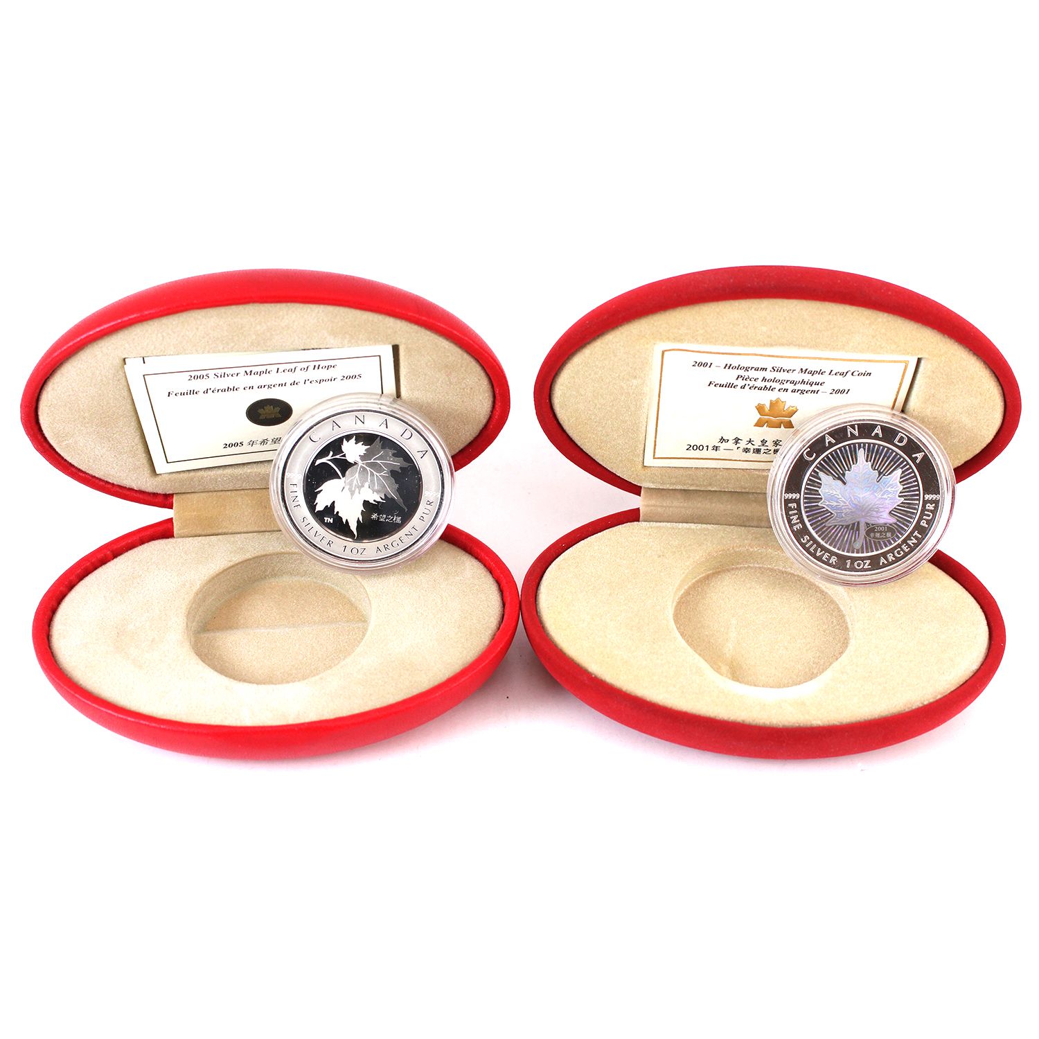 Coins come encapsulated in original displays with COAs. 2001 coin lightly toned and case lightly worn & 2005 capsule lightly scratched. 2pcs (Tax Exempt)