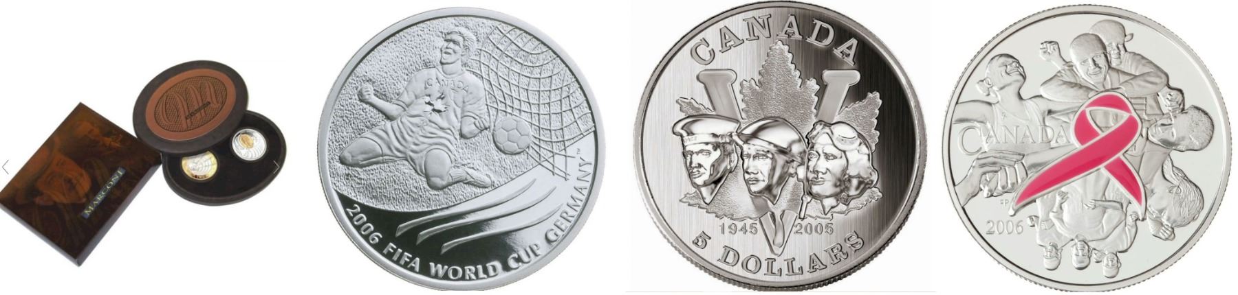 2001 $5 Marconi 2 Coin Set, 2003 $5 2006 Fifa World Cup, 2005 $5 60th Anniversary of the End of 2nd
