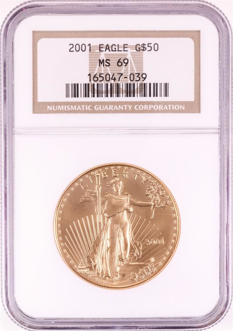 One 2001 $50 American Gold Eagle Gold Coin NGC MS69. NGC Certified.