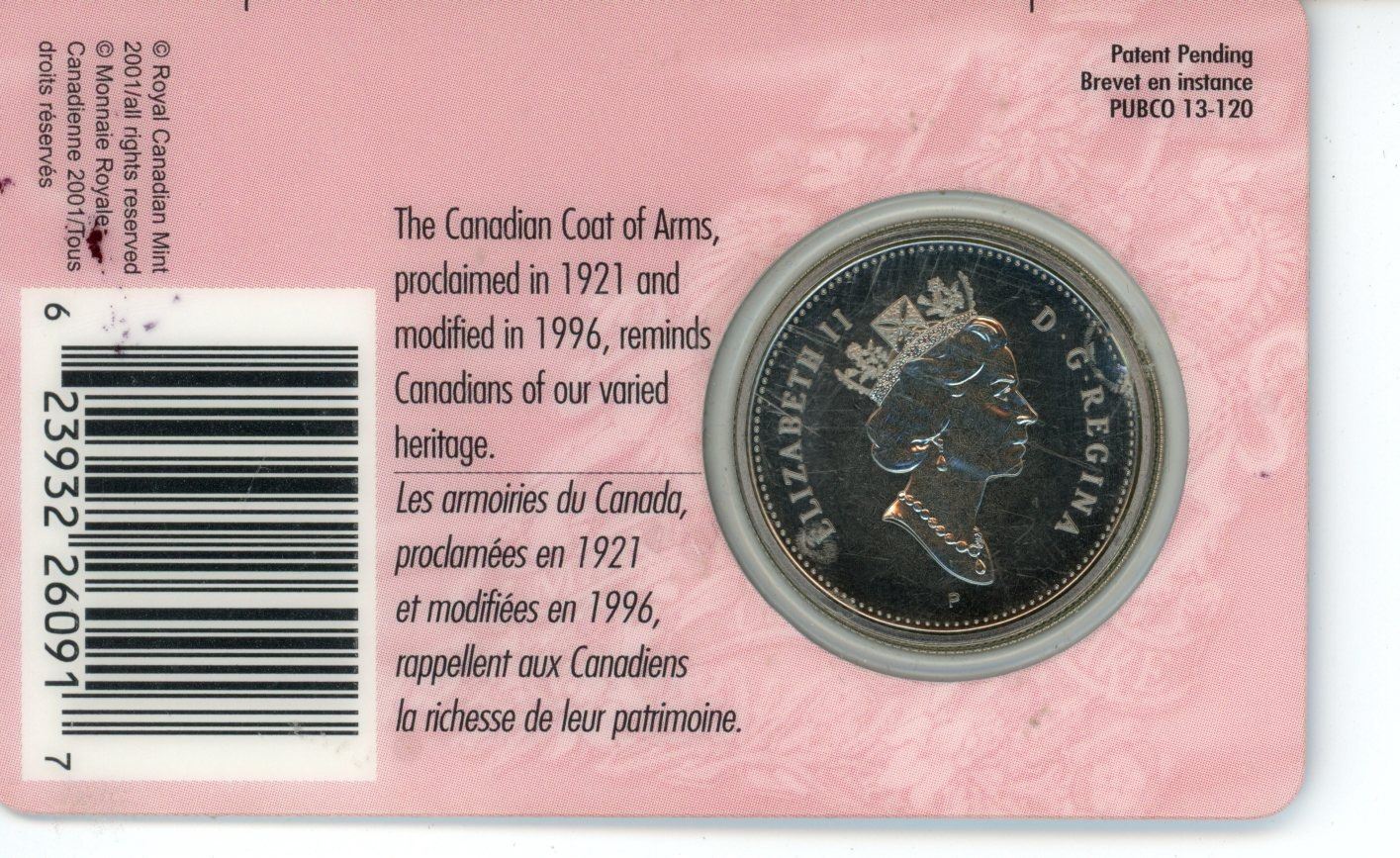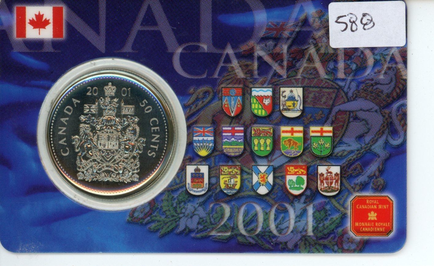 2001 50 Cents Credit Card with 13 Provincial Crests. As issued by the Royal Canadian Mint.