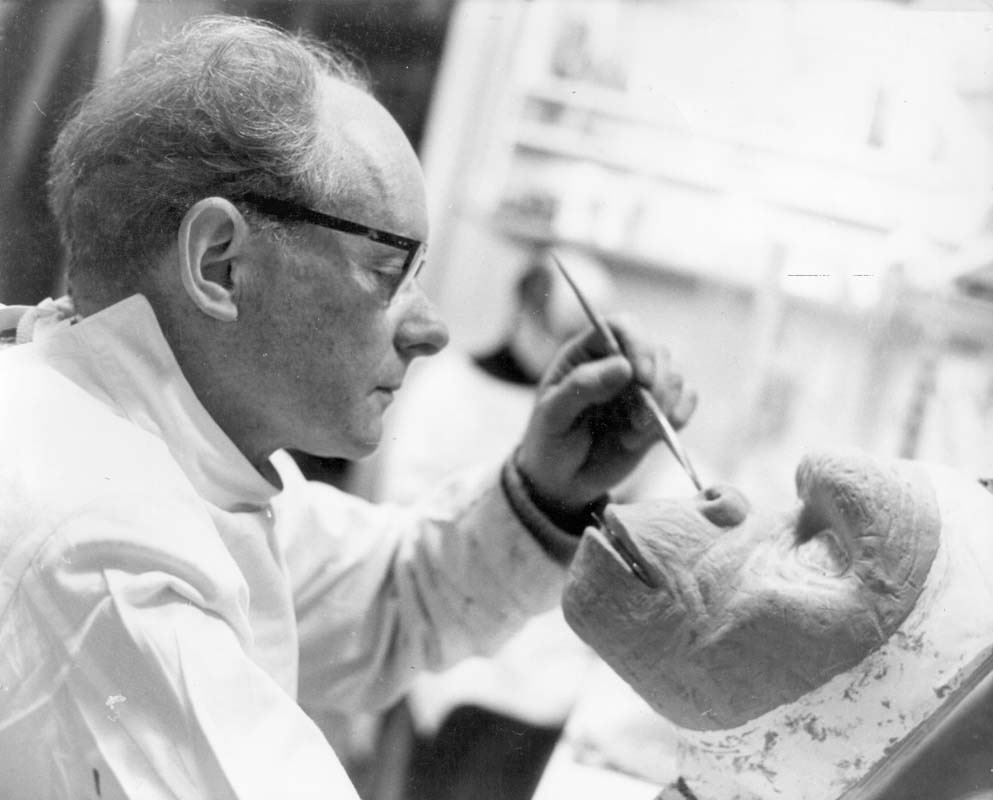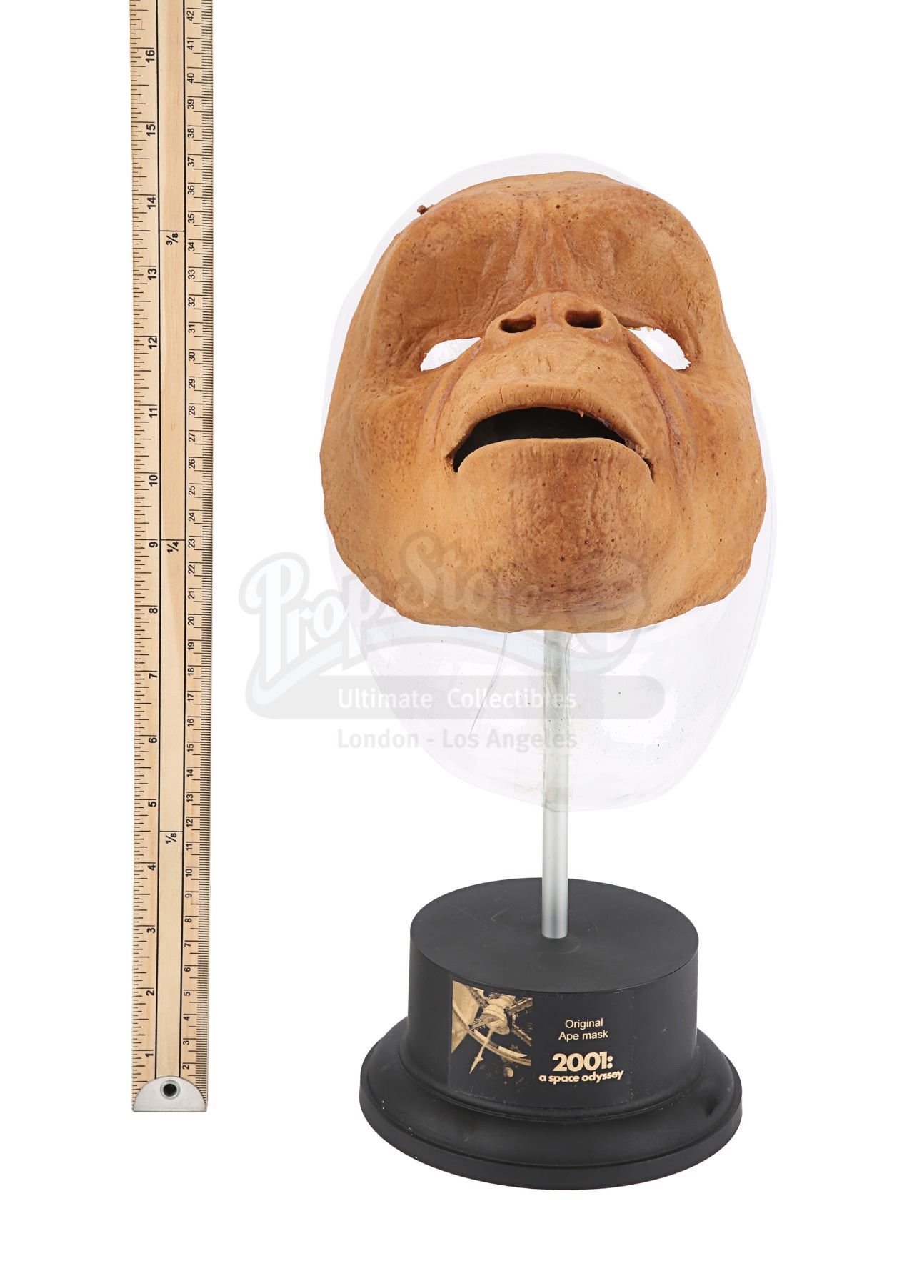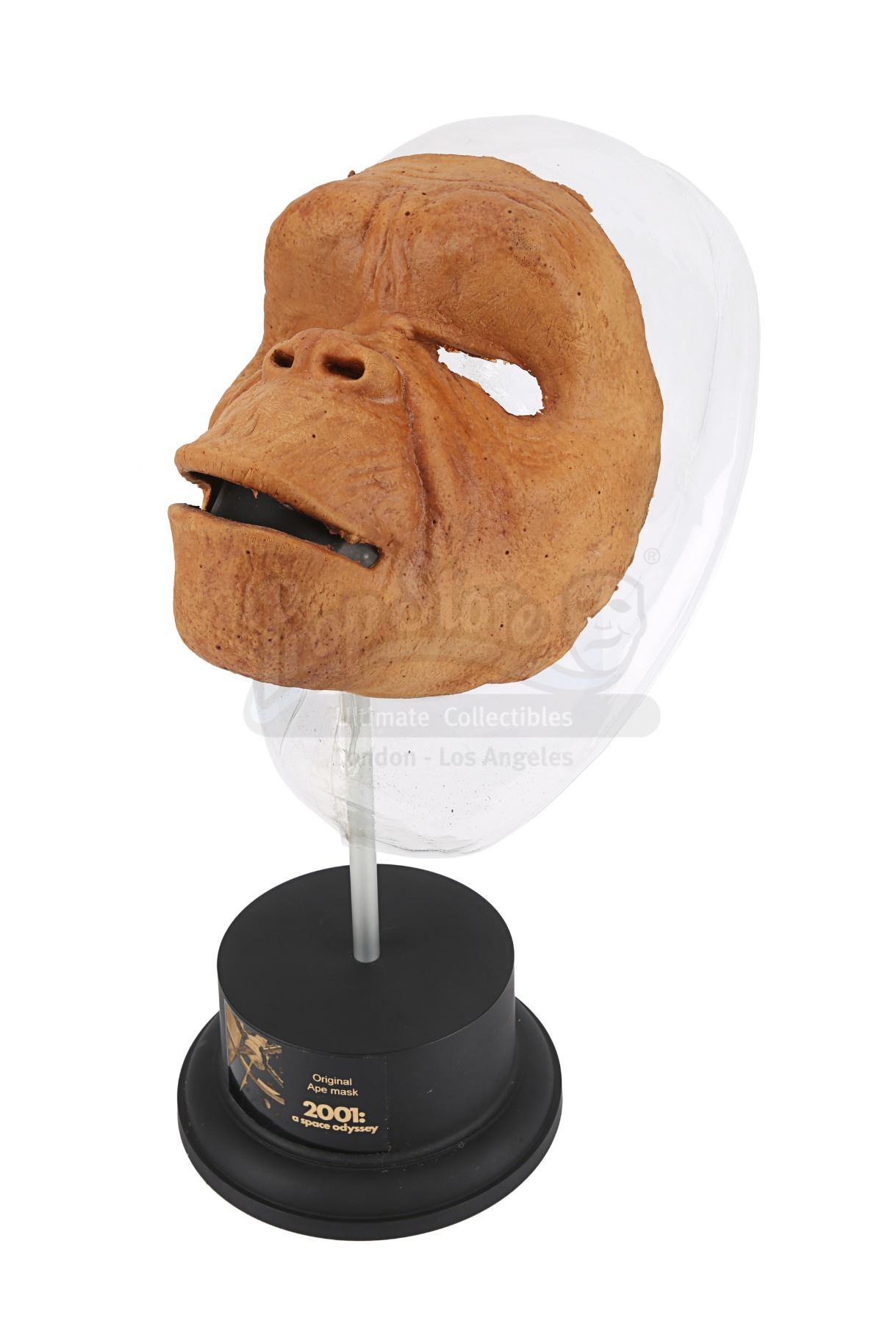 An ape mask from Stanley Kubrick's sci-fi film 2001: A Space Odyssey. A group of apes surrounded the Monolith during the "Dawn of Man" sequence which opened the movie.