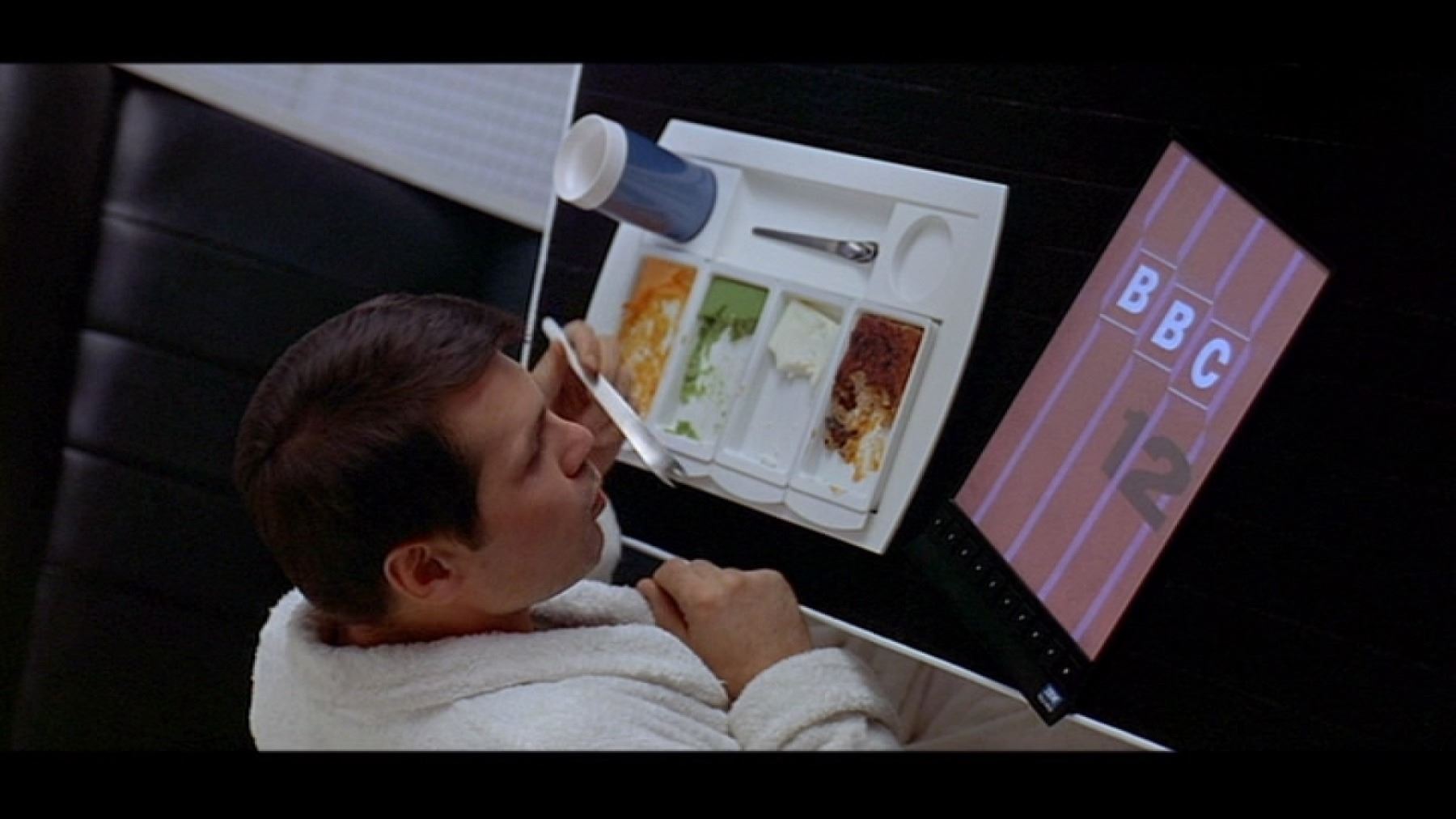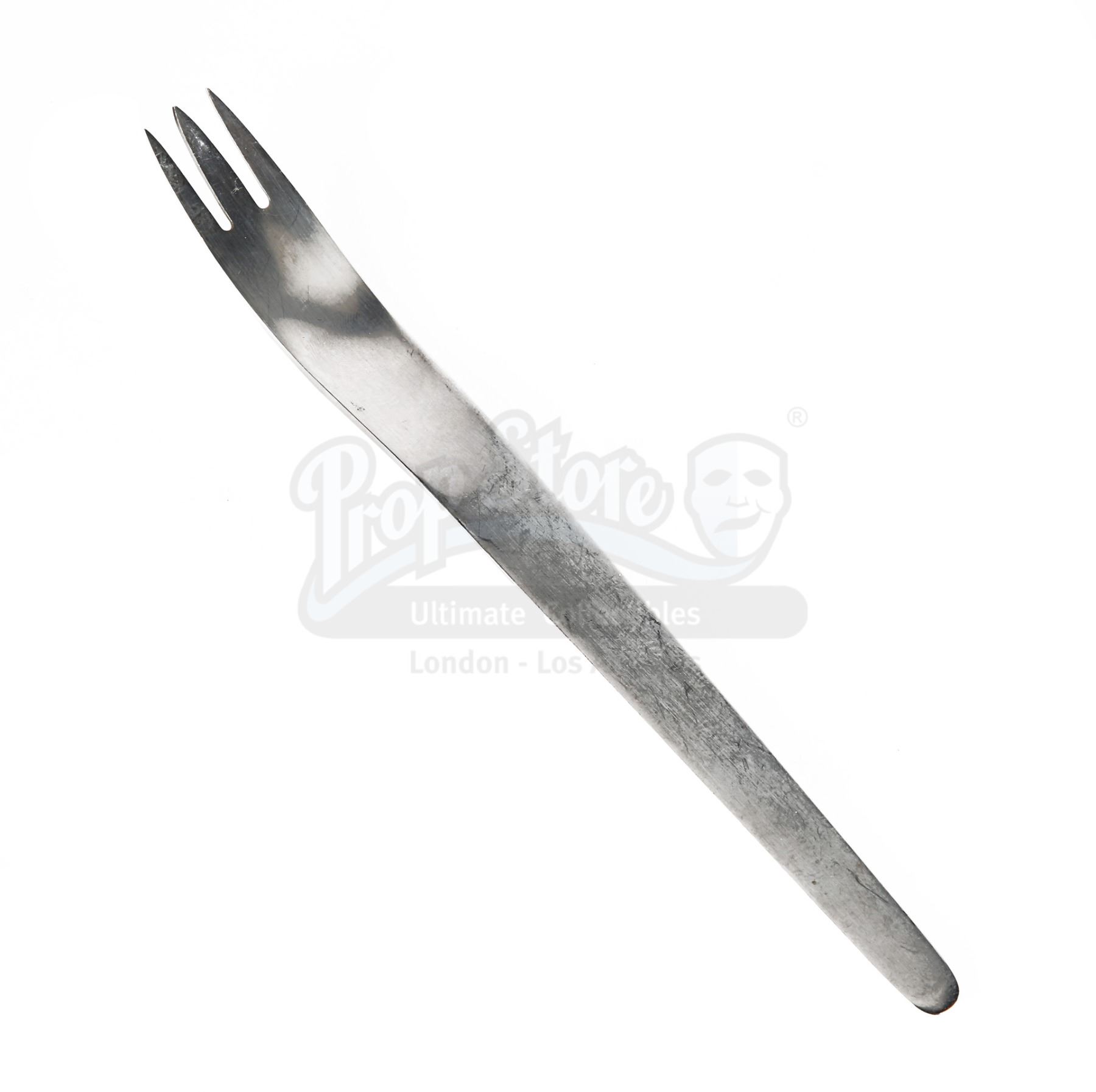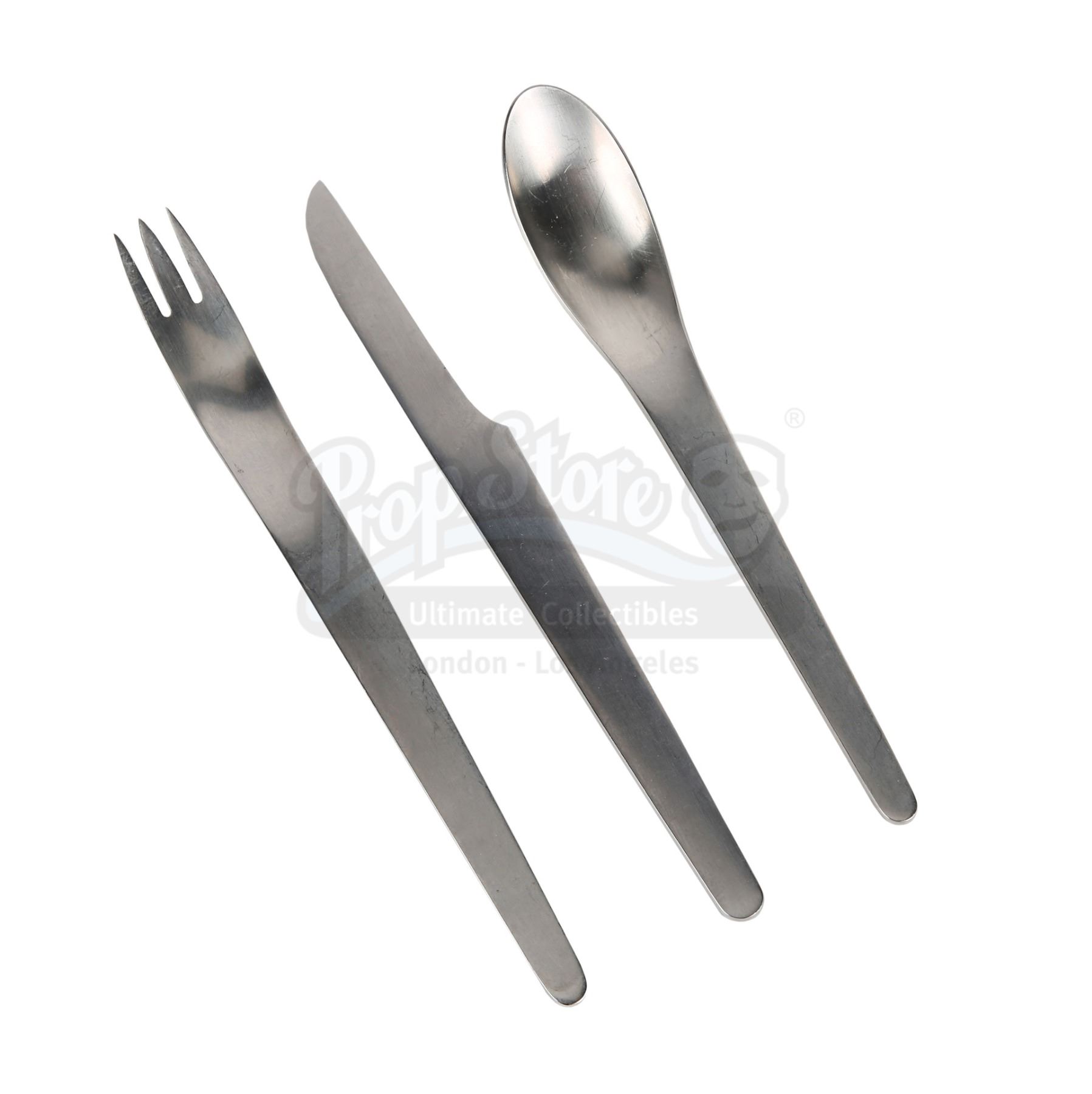 A set of Discovery One spaceship cutlery from Stanley Kubrick's sci-fi epic 2001: A Space Odyssey. Dr. Dave Bowman (Keir Dullea) and Dr. Frank Poole (Gary Lockwood) used cutlery while eating their food aboard Discovery One, en route to Jupiter.