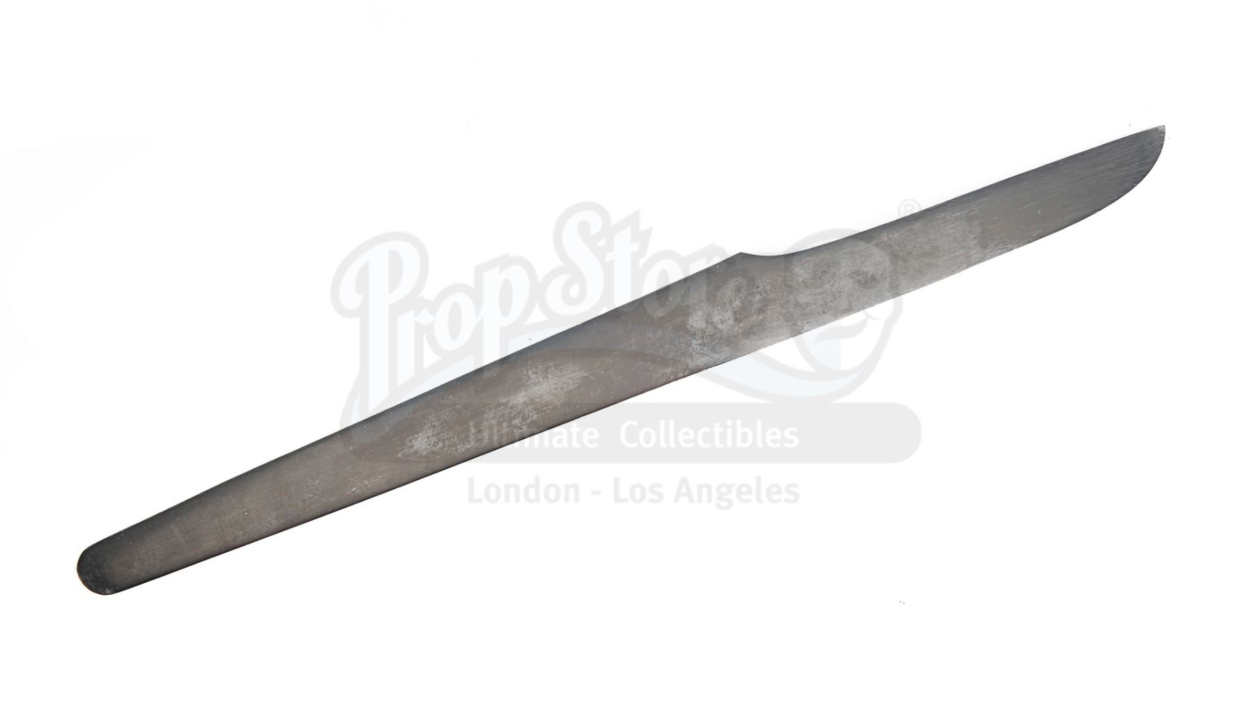 11.2. In the catalogue descriptions, Prop Store takes steps to identify and provide provenance for Lots offered at auction. In many cases, the Lots offered were used in or in conjunction with motion pictures or other programmes and information is furnished in order to fully identify and describe the Lot offered at Auction, including photographs and illustrations. Prop Store in no way claims any connection to or relationship with the producers of the motion picture or other programme. In all cases, the use of the titles or other elements of a motion picture or other programme is for informational purposes only.