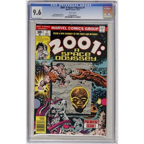 <B>2001: A Space Odyssey #1 (Marvel, 1976) CGC NM+ 9.6 White pages.</B></I> Jack Kirby story and cover. Overstreet 2007 NM- 9.2 value = $1. CGC census 10/07: 48 in 9.6, 15 higher.<BR><BR><b>Shipping:</b> Comics - Slabbed (certified) (<a target="_blank" href="http://www.heritageauctions.com/common/shipping.php">view shipping information</a>)