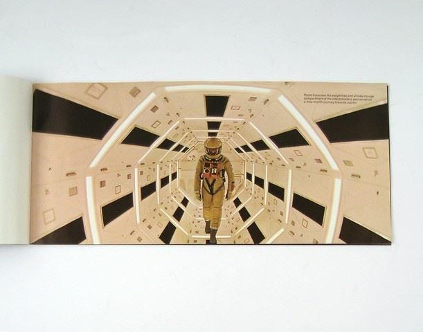 2001: A Space Odyssey photo booklet. 2001 souvenir program– This incredibly lavish souvenir program from the original roadshow release of 2001: a space Odyssey is a rare item. It is the only souvenir program ever formatted in the super penetration ratio, and features full color photographs throughout, as well as vellum pages with printed information. All in all, an incredible souvenir from The films original roadshow release.(approx. 16" x 7")