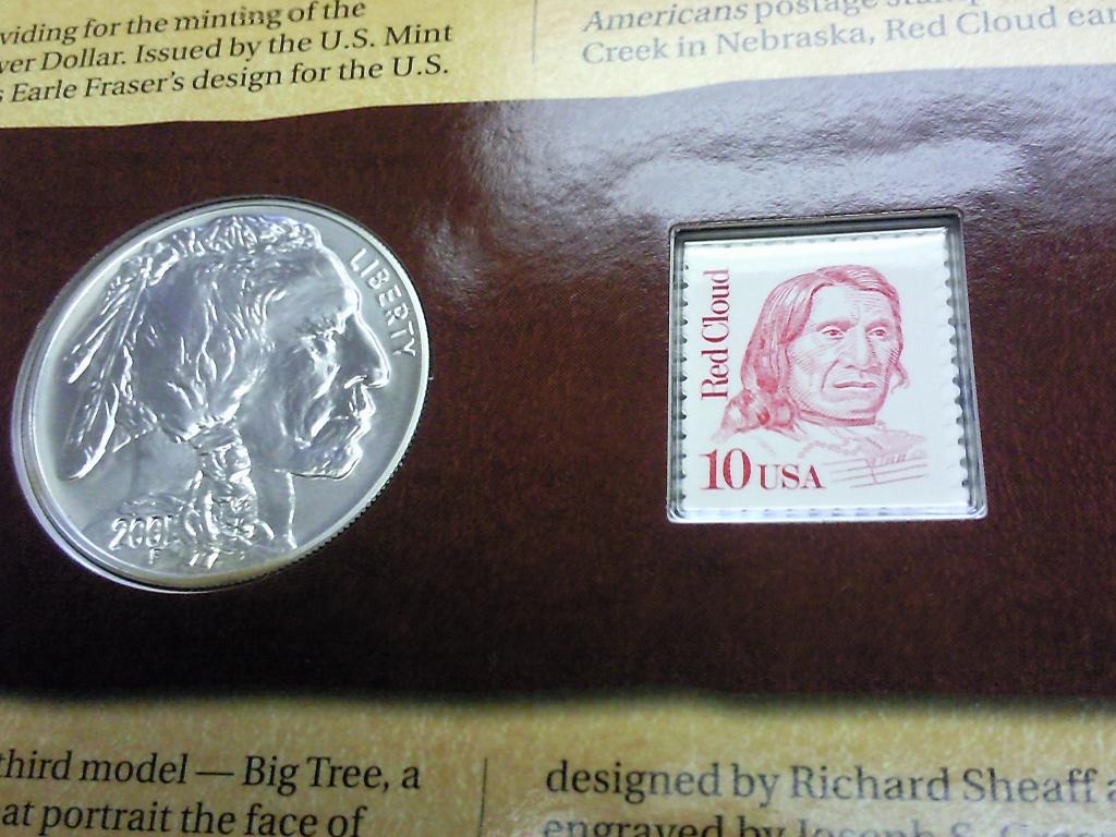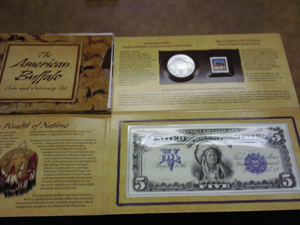 CONTAINS: UNC 2001 BUFFALO SILVER DOLLAR, REPRO $5 SILVER CERT AND STAMP, ORIGINAL PACKAGING