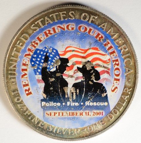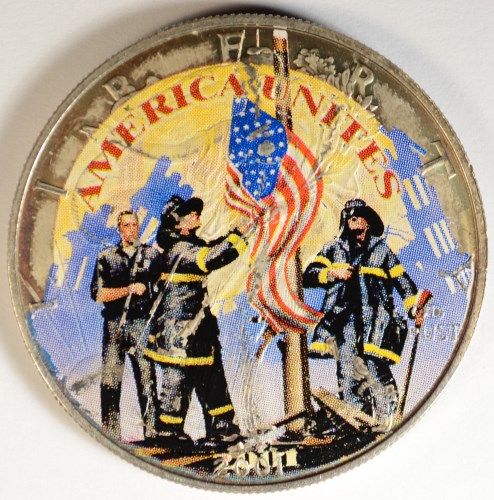 2001 AMERICAN SILVER EAGLE, COLORIZED  TO REMEMBER FIRST RESPONDERS OF 9/11