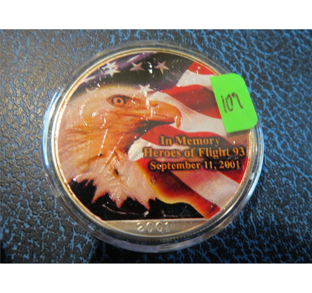 2001 AMERICAN SILVER EAGLE -Colorized 9/11 FLIGHT 93