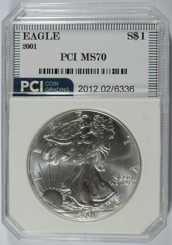 2001 AMERICAN SILVER EAGLE, PCI MS-70! TRENDS $800.00