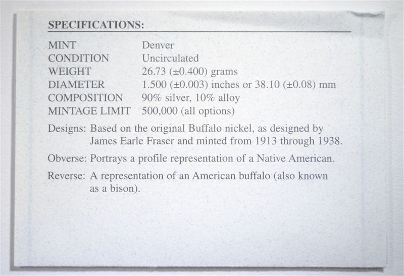 2001 American Buffalo Unc. Silver Dollar In Original Packaging. ESTIMATE $150 - $175.