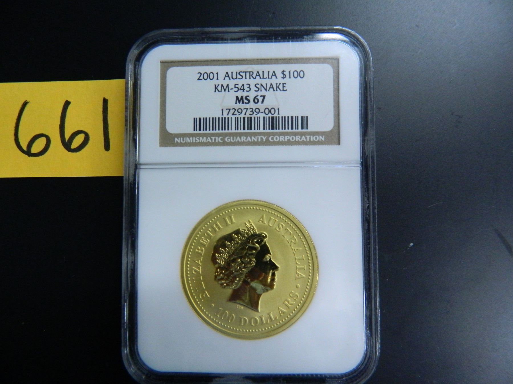 2001 Australia 1 Oz Gold, NGC M67. Lunar Series. Year Of The Snake. Very Collectible! series 1