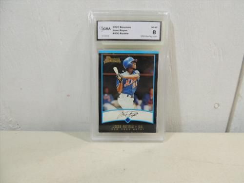 2001 BOWMAN #430 BASEBALL ROOKIE CARD JOSE REYES. GRADED NM-MT 8 BY GMA. AS SHOWN. VIEW PICTURE FOR DETAIL.