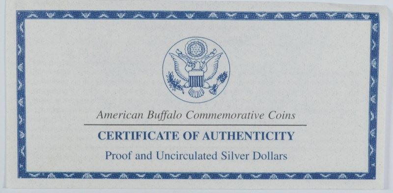 2001 BUFFALO COMMEMORATIVE DOLLAR SET, PROOF AND BU IN ORIGINAL BOX AND COA