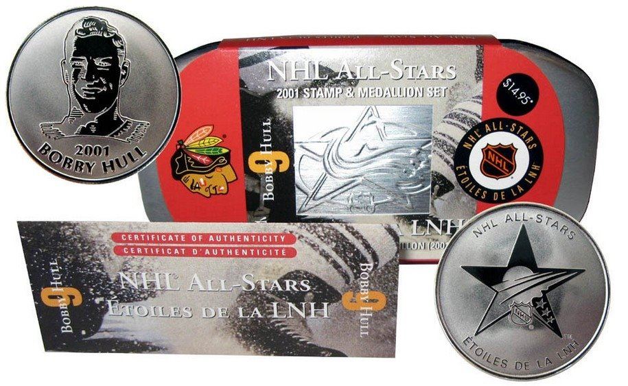 2001 Bobby Hull NHL All-Stars Stamp and Medallion Set.