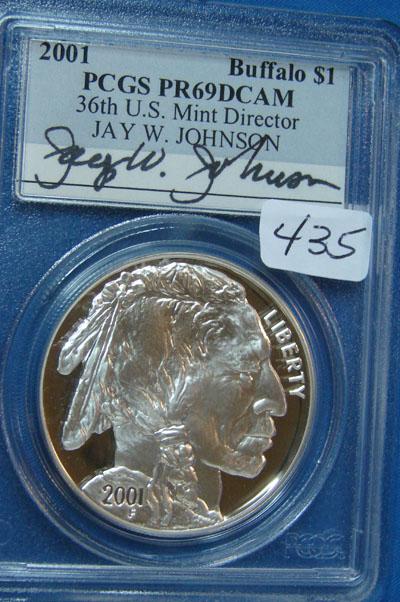 2001 Buffalo Silver Dollar PCGS Proof 69 DCAM 36h U.S.Mint Director Jay W. Johnson, Signed