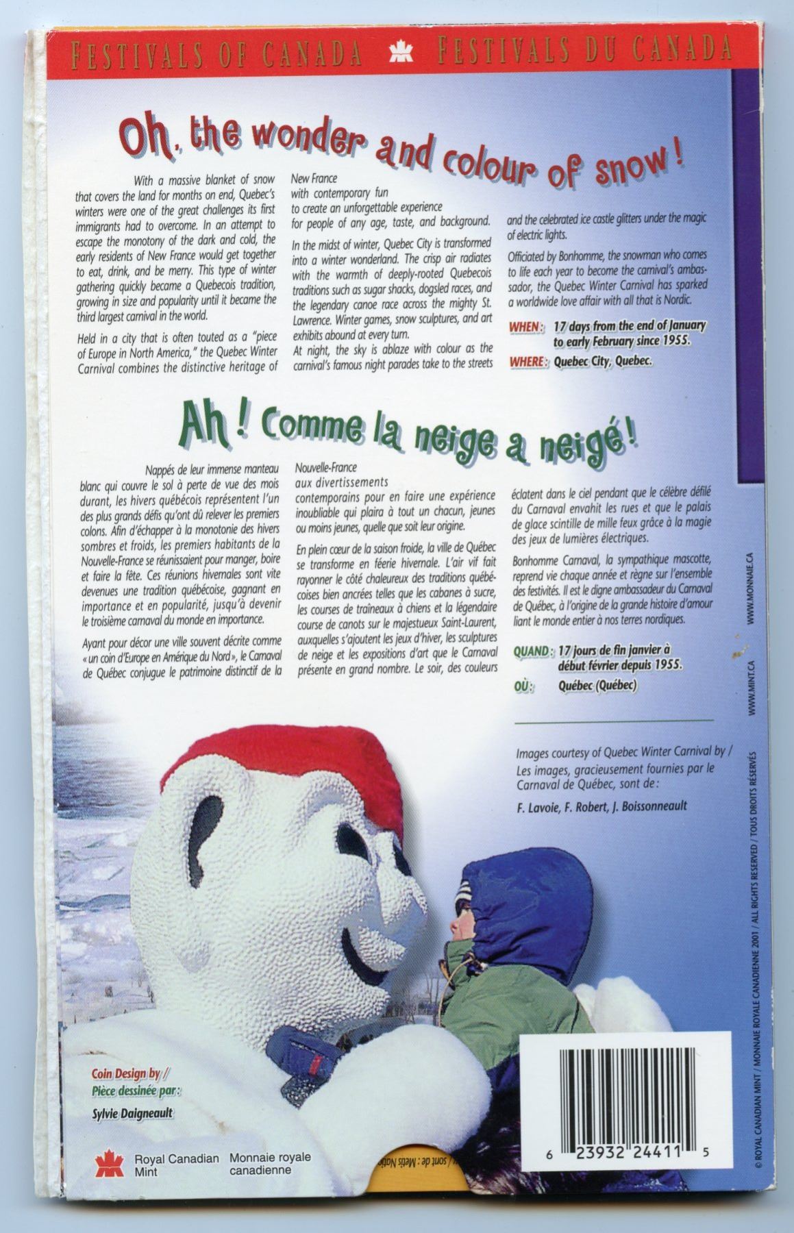 Festivals of Canada: Quebec. Sterling silver coin in packaging.